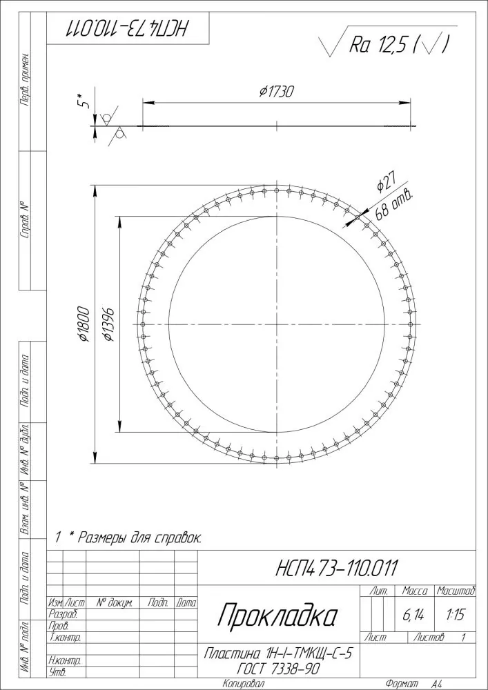 Прокладка по чертежу №НСП473-110.011 из Пластины 1Н-I-ТМКЩ-С-5 ГОСТ 7338-90