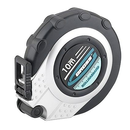 Геодезическая рулетка Gross Rollmassband 31250, 10 м х 13 мм, в закрытом корпусе, с металлической лентой с нейлоновым покрытием, используется для определения расстояний и размеров различных объектов. Механизм заключен в двухкомпонентный закрытый корпус из пластика и термостойкой резины, поэтому рулетка устойчива к повреждениям в результате ударов и падений. Комбинированный зацеп упрощает фиксацию измерительной ленты на измеряемой поверхности. Инструмент будет полезен на строительной площадке или земельном участке, а также при проведении обмеров внутри помещений.ПреимуществаИзмерительное полотно выполнено из металла, поэтому не растянется со временем.Лента защищена нейлоновым покрытием, поэтому устойчива к истиранию и служит в 6 раз дольше, чем окрашенные полотна.В корпус вмонтирована удобная ручка, позволяющая быстро смотать измерительную ленту.Возвратный механизм имеет передаточный коэффициент 3:1, что в 3 раза повышает эффективность данной модели по сравнению с рулетками, оснащенными обычным механизмом.