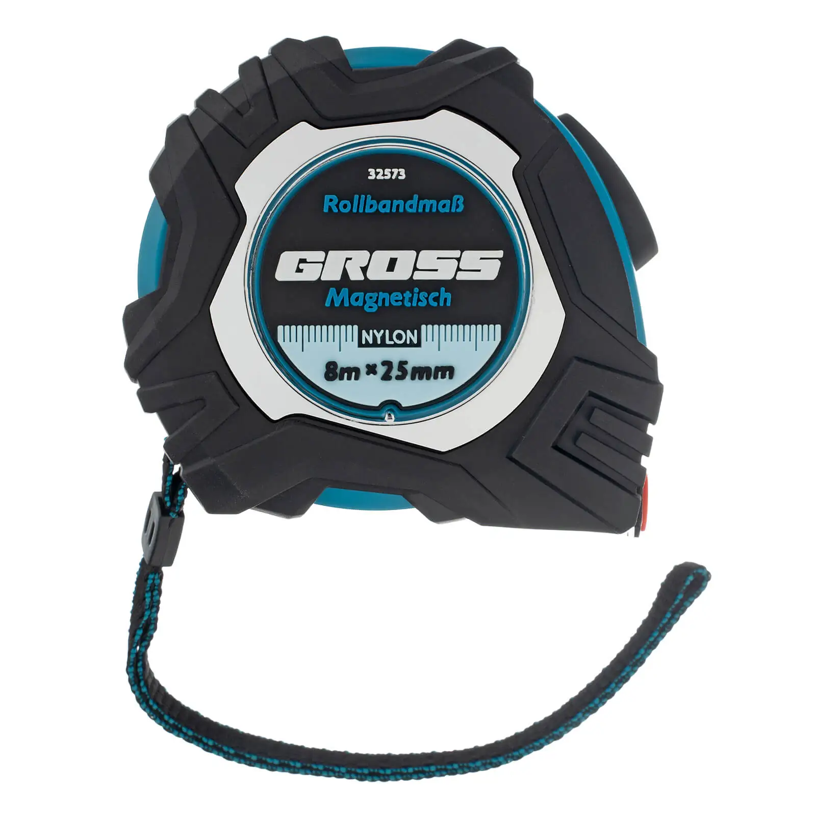 Рулетка «Magnetisch» Gross 32573 в обрезиненном корпусе, с полотном 8 м х 25 мм, магнитным зацепом, нейлоновым покрытием и функцией автоматической фиксации, используется в ходе ремонтных и строительных работ. Оптимально подходит для замера длины стен, полов, различных заготовок, мебели, оконных проемов и т.д. Благодаря магнитному зацепу рулетку удобно использовать при работе с металлическими поверхностями.ПреимуществаКорпус с обрезиненным покрытием защищен от случайных падений с небольшой высоты.Нейлоновое покрытие придает полотну устойчивость к истиранию, что повышает его ресурс в несколько раз.Функция автостопа обеспечивает удобство работы, т.к. лента скручивается только при нажатии кнопки.За счет подвижного зацепа компенсируется погрешность измерений из-за его толщины, что повышает точность работы.Шкала с крупным шрифтом хорошо видна даже на расстоянии.С рулеткой удобно работать благодаря ремешку и зацепу для фиксации на запястье и поясе, соответственно.