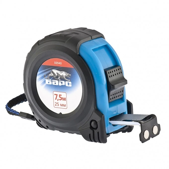 Рулетка Вектор 7,5 м х 25 мм,утолщенное полотно,магнитный зацеп,обрезиненный корпус Барс [1 шт]