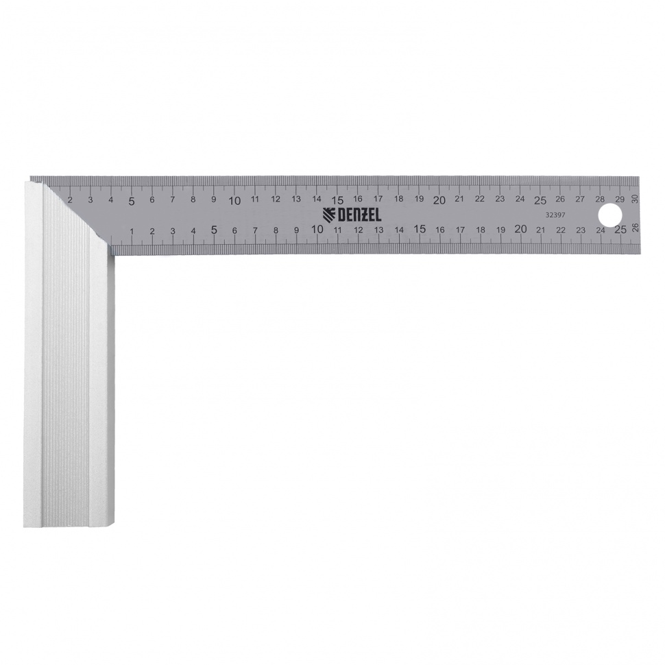 Угольник стальной 300 мм, нержавеющая сталь, градуировка, алюминиевое основание Denzel [1 шт]