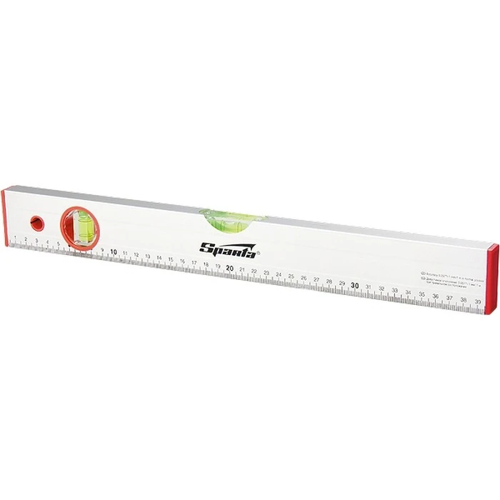 Алюминиевый уровень Sparta 35112 длиной 1200 мм, с 2 глазками и линейкой, рассчитан на применение в быту и в производственных условиях. Он поможет добиться точного выстраивания разметочных линий для последующей установки конструкций, полок, укладки облицовочных материалов и т.д. Две пузырьковые ампулы обеспечивают точный контроль отклонений поверхностей от горизонтальной и вертикальной плоскостей.Для определения отклонения вертикали 90 градусов необходимо использовать пузырьковую ампулу только в верхнем положении уровня. Только базовая поверхность является рабочей (противоположная ампуле 180 градусов).ПреимуществаАнодированный алюминиевый профиль, из которого выполнен уровень, отличается прочностью и антикоррозионными свойствами.На корпусе имеется шкала, позволяющая осуществлять линейные измерения.Благодаря отверстию в корпусе инструмент можно хранить в подвешенном виде.
