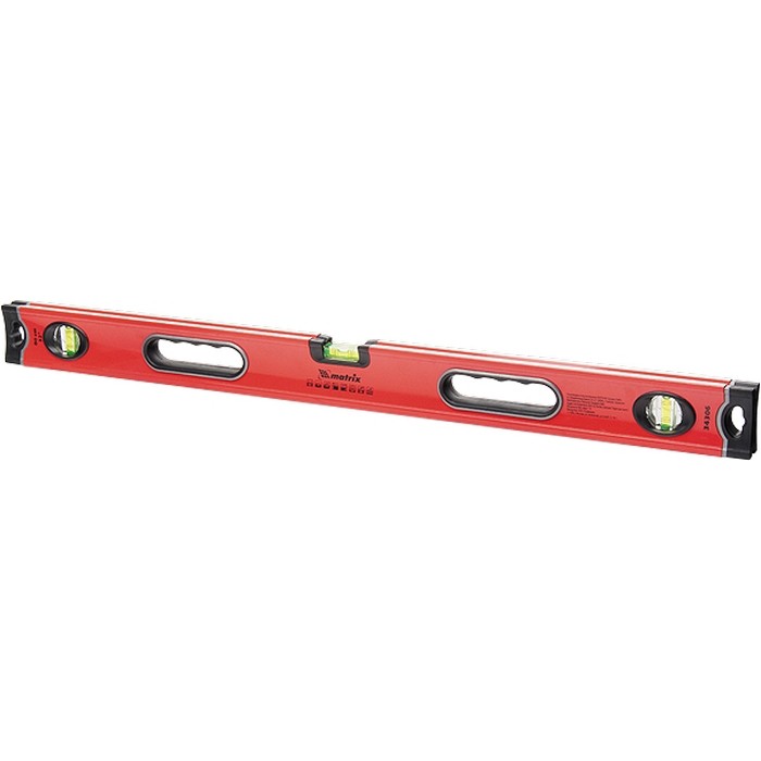 Алюминиевый уровень Matrix 34312 длиной 1500 мм, с 3 глазками, ударопрочными заглушками и двухкомпонентными ручками, повышает точность работы, т.к. позволяет обнаружить отклонения от вертикали, горизонтали и угла 45 градусов. Используется профессионалами и частными мастерами при монтаже конструкций, укладке покрытий, облицовке поверхностей и т.д.Для определения отклонения вертикали 90 градусов необходимо использовать пузырьковую ампулу только в верхнем положении уровня. Только базовая поверхность является рабочей (противоположная ампуле 180 градусов).ПреимуществаАлюминиевый профиль повышает ресурс уровня, обеспечивает жесткость и надежность его конструкции.Погрешность при измерениях уменьшена за счет дополнительного фрезерования рабочей поверхности (точность 0,5 мм/м).Уровень имеет отверстия с подпальцевыми упорами для надежного хвата.