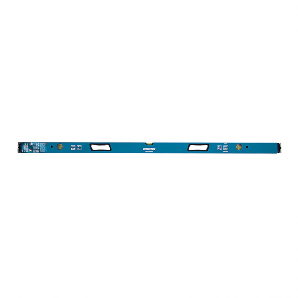 Усиленный алюминиевый уровень Gross 34335 длиной 1500 мм, с ударопрочными заглушками, рукоятками и 3 глазками, — универсальный инструмент для решения профессиональных задач на строительной площадке. Благодаря ему можно выровнять поверхности относительно горизонтали и вертикали или проверить соответствие углу 45 градусов.ПреимуществаУсиленная конструкция — двухкамерный алюминиевый профиль повышает стойкость к скручиванию и обеспечивает долгий срок службы уровня.Эффективная работа — благодаря фрезерованной подошве погрешность измерений сведена к минимуму.Комфортная эксплуатация — резиновые рукоятки предотвращают проскальзывание инструмента в руках.Ударопрочность — двухкомпонентные заглушки обеспечивают сохранность инструмента при падениях с небольшой высоты.Удобное хранение — боковые отверстия служат для подвешивания инструмента на крючок.Для определения отклонения вертикали 90 градусов необходимо использовать пузырьковую ампулу только в верхнем положении уровня. Только базовая поверхность является рабочей (про