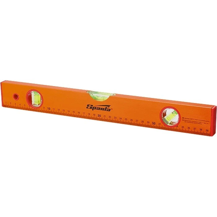 Алюминиевый уровень Sparta 330415 длиной 2000 мм, желтого цвета, с 3 глазками и линейкой, необходим в ходе проведения строительных, отделочных, облицовочных и других работ, где требуется особая точность. Уровень с тремя глазками поможет измерить горизонтальную и вертикальную плоскости, выставить угол 45 градусов, выровнять предметы и т.д.Для определения отклонения вертикали 90 градусов необходимо использовать пузырьковую ампулу только в верхнем положении уровня. Только базовая поверхность является рабочей (противоположная ампуле 180 градусов).ПреимуществаАлюминиевый профиль, из которого выполнен уровень, гарантирует его надежность.С обеих сторон уровня установлены заглушки, предотвращающие попадание пыли и строительного мусора в корпус.Линейка поможет начертить линию нужной длины или провести измерения.Точность проводимых замеров составляет 1 мм/м (0,057 градуса).