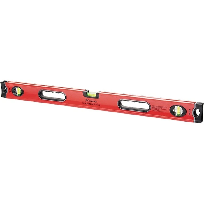 Алюминиевый уровень Matrix 34304 длиной 600 мм, с 3 глазками, ударопрочными заглушками и двухкомпонентными ручками, повышает точность работы, т.к. позволяет обнаружить отклонения от вертикали, горизонтали и угла 45 градусов. Используется профессионалами и частными мастерами при монтаже конструкций, укладке покрытий, облицовке поверхностей и т.д.Для определения отклонения вертикали 90 градусов необходимо использовать пузырьковую ампулу только в верхнем положении уровня. Только базовая поверхность является рабочей (противоположная ампуле 180 градусов).ПреимуществаАлюминиевый профиль повышает ресурс уровня, обеспечивает жесткость и надежность его конструкции.Погрешность при измерениях уменьшена за счет дополнительного фрезерования рабочей поверхности (точность 0,5 мм/м).Уровень имеет отверстия с подпальцевыми упорами для надежного хвата.
