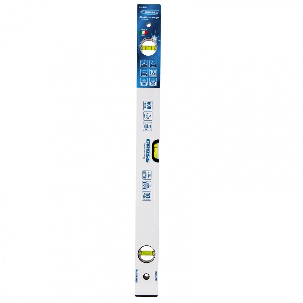 Фрезерованный алюминиевый уровень Gross 33671 длиной 600 мм, магнитный, с 3 глазками, станет незаменимым инструментом в быту и на строительной площадке. С его помощью выявляются погрешности измерений, отклонения от заданной вертикали и горизонтали.Для определения отклонения вертикали 90 градусов необходимо использовать пузырьковую ампулу только в верхнем положении уровня. Только базовая поверхность является рабочей (противоположная ампуле 180 градусов).ПреимуществаКонструкционную прочность инструмента гарантирует алюминиевый профиль и пузырьковые камеры с двойными стенками.Благодаря магнитам строительный уровень можно зафиксировать на металлических поверхностях.Для снижения погрешности проводимых измерений до 0,5 мм/м магнитный уровень фрезерован.Инструмент изготовлен в Италии и прошел поэтапную проверку качества.Электронный контроль точности при установке пузырьковых ампул обеспечивает высокую эффективность работы.