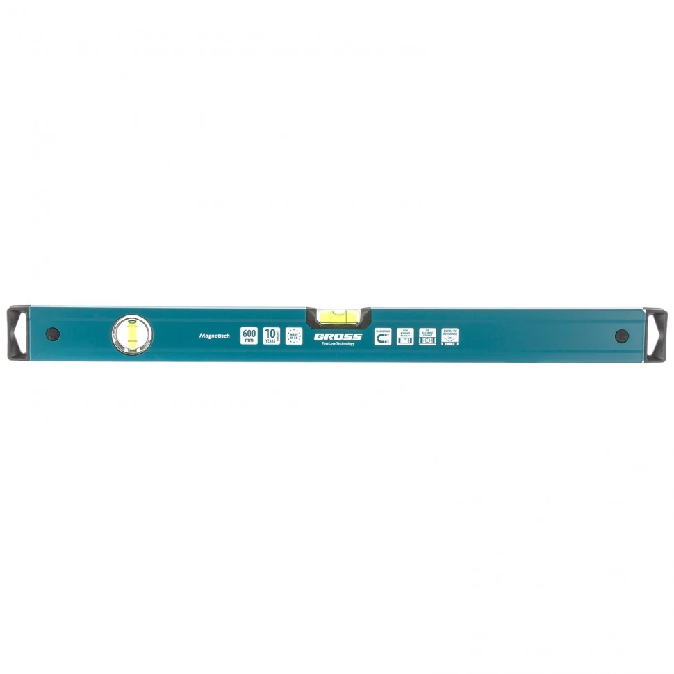 Алюминиевый уровень Gross Magnetisch 33711 длиной 600 мм имеет 2 глазка для определения отклонений от вертикали или горизонтали. Пригодится для решения как бытовых, так и профессиональных задач во время строительства или ремонта. Погрешность при проведении замеров не превышает 1 мм на метр (0,057 градуса).Для определения отклонения вертикали 90 градусов необходимо использовать пузырьковую ампулу только в верхнем положении уровня. Только базовая поверхность является рабочей (противоположная ампуле 180 градусов).ПреимуществаПрочность и долговечность — каркас выполнен из алюминиевого профиля, а корпус — из ударопрочной пластмассы.Удобство использования — за счет встроенных магнитов уровень можно фиксировать на металлических поверхностях.Увеличенные ампулы — с инструментом комфортно работать.Высокая точность замеров — монтаж глазков осуществлен под электронным контролем.Высокое качество — строительный уровень изготовлен в Европе.