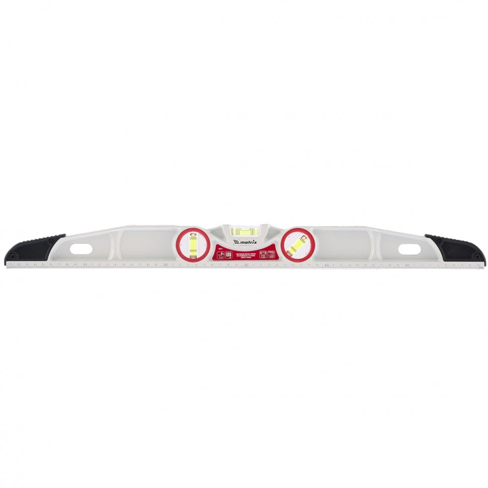 Алюминиевый литой уровень Matrix 34911 длиной 600 мм, фрезерованный, с 3 глазками и двумя ударными площадками, предназначен для проверки поверхностей на отклонение от горизонтали, вертикали и угла 45 градусов. Инструмент значительно повышает точность проводимых работ, пригодится частным мастерам и профессионалам на стройплощадке, при выполнении ремонта и монтаже различных конструкций.Для определения отклонения вертикали 90 градусов необходимо использовать пузырьковую ампулу только в верхнем положении уровня. Только базовая поверхность является рабочей (противоположная ампуле 180 градусов).ПреимуществаУровень изготовлен из прочного и коррозионностойкого алюминиевого профиля.Контроль при установке пузырьковых ампул осуществлен электронным методом, это повышает надежность устройства.Фрезерованная нижняя грань позволяет снизить погрешность до 0,5 мм/м.Две ударные площадки делают возможным дополнительное выравнивание материалов с помощью небольшой резиновой киянки.На корпусе уровня имеется шкала для проведения лин