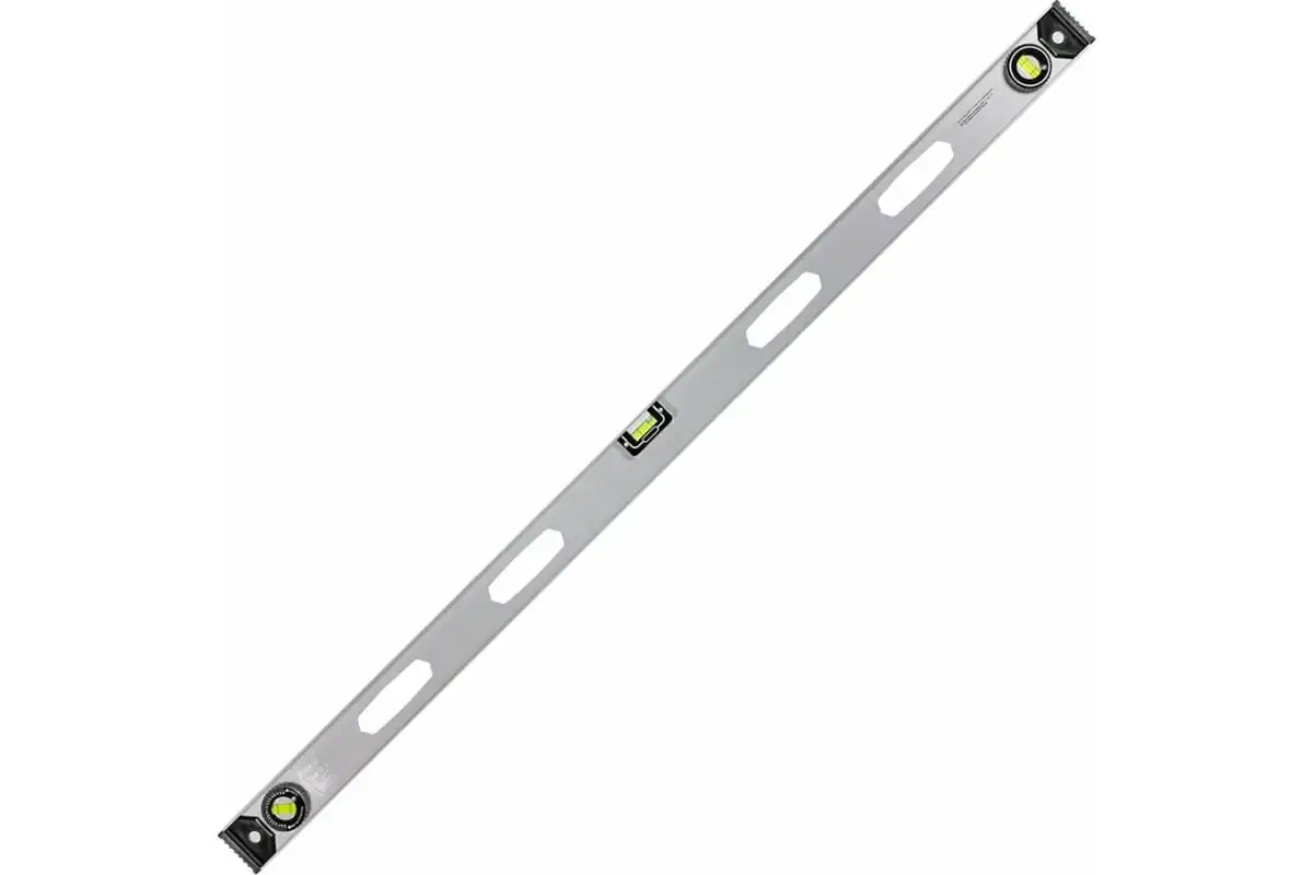 Алюминиевый уровень Matrix «Рельс» 340419 длиной 2000 мм имеет 3 глазка: 2 для проверки отклонений от заданной вертикали и горизонтали и 1 поворотный для проверки наклонных поверхностей.Для определения отклонения вертикали 90 градусов необходимо использовать пузырьковую ампулу только в верхнем положении уровня. Только базовая поверхность является рабочей (противоположная ампуле 180 градусов).ПреимуществаПластиковые заглушки по бокам корпуса повышают его ударопрочность и предотвращают попадание мусора.Шкала на корпусе позволяет измерить длину или ширину предметов.Погрешность измерений составляет всего 1 мм на метр (0,057 градуса).