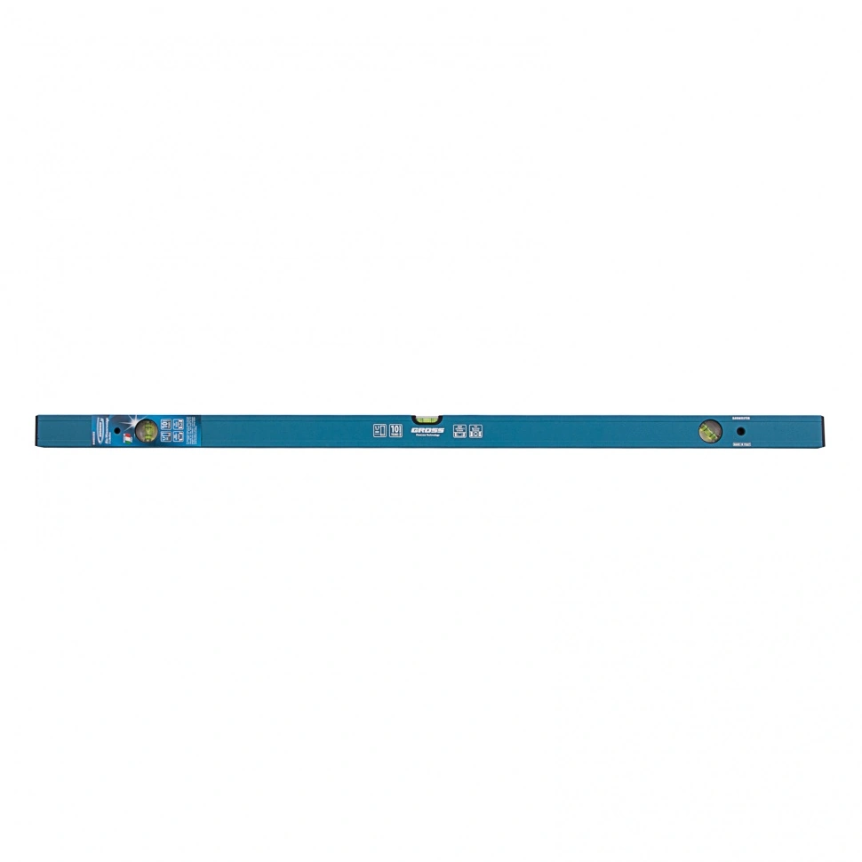 Усиленный алюминиевый уровень Gross 33632 длиной 1200 мм, с 3 глазками, поможет найти отклонения от горизонтали и вертикали для повышения точности работы. Этот простой, но незаменимый для любого мастера инструмент пригодится на стройке, при проведении ремонтных и монтажных работ. Уровень с глазком на 45 градусов позволяет измерить угол наклона, поэтому также пригодится при кровельных работах, проверке откосов и различных наклонных поверхностей.ПреимуществаПротивоударная конструкция — колбы из полистирола обладают высокой стойкостью к механическим воздействиям, поэтому инструмент выдерживает падения с небольшой высоты.Защитное порошковое покрытие — инструмент устойчив к воздействию агрессивных сред.Качественное исполнение — уровень изготовлен в Италии на высокотехнологичном производстве, погрешность измерений составляет всего 0,5 мм/м.Для определения отклонения вертикали 90 градусов необходимо использовать пузырьковую ампулу только в верхнем положении уровня. Только базовая поверхность является рабочей (против