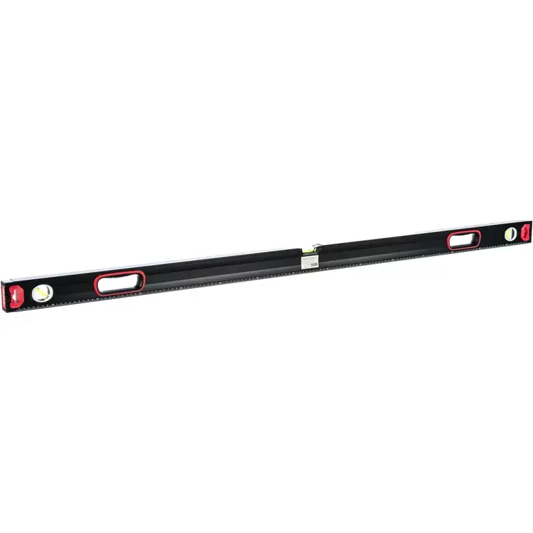 Усиленный алюминиевый уровень Matrix 34366 длиной 2000 мм, фрезерованный, с 3 глазками и двухкомпонентными рукоятками, служит для проверки горизонтальных, вертикальных поверхностей и поверхностей, расположенных под углом 45. Пригодится частным мастерам и профессионалам при проведении строительных, ремонтных, монтажных и работ.Для определения отклонения вертикали 90 градусов необходимо использовать пузырьковую ампулу только в верхнем положении уровня. Только базовая поверхность является рабочей (противоположная ампуле 180 градусов).ПреимуществаУровень выполнен из легкого, но прочного и долговечного алюминиевого профиля.Электронная калибровка глазков позволяет добиться более точных замеров.Фрезеровка рабочей грани обеспечивает ровное положение инструмента, что снижает погрешность измерений.Для удобства захвата в корпусе предусмотрены рукоятки с прорезиненными вставками.Шкала на корпусе служит для проведения линейных замеров.