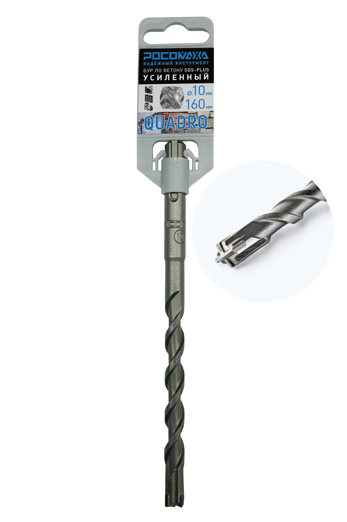 Бур по бетону SDS-plus усиленный 4 режущие грани 10*160 мм "РОСОМАХА" [5 шт]