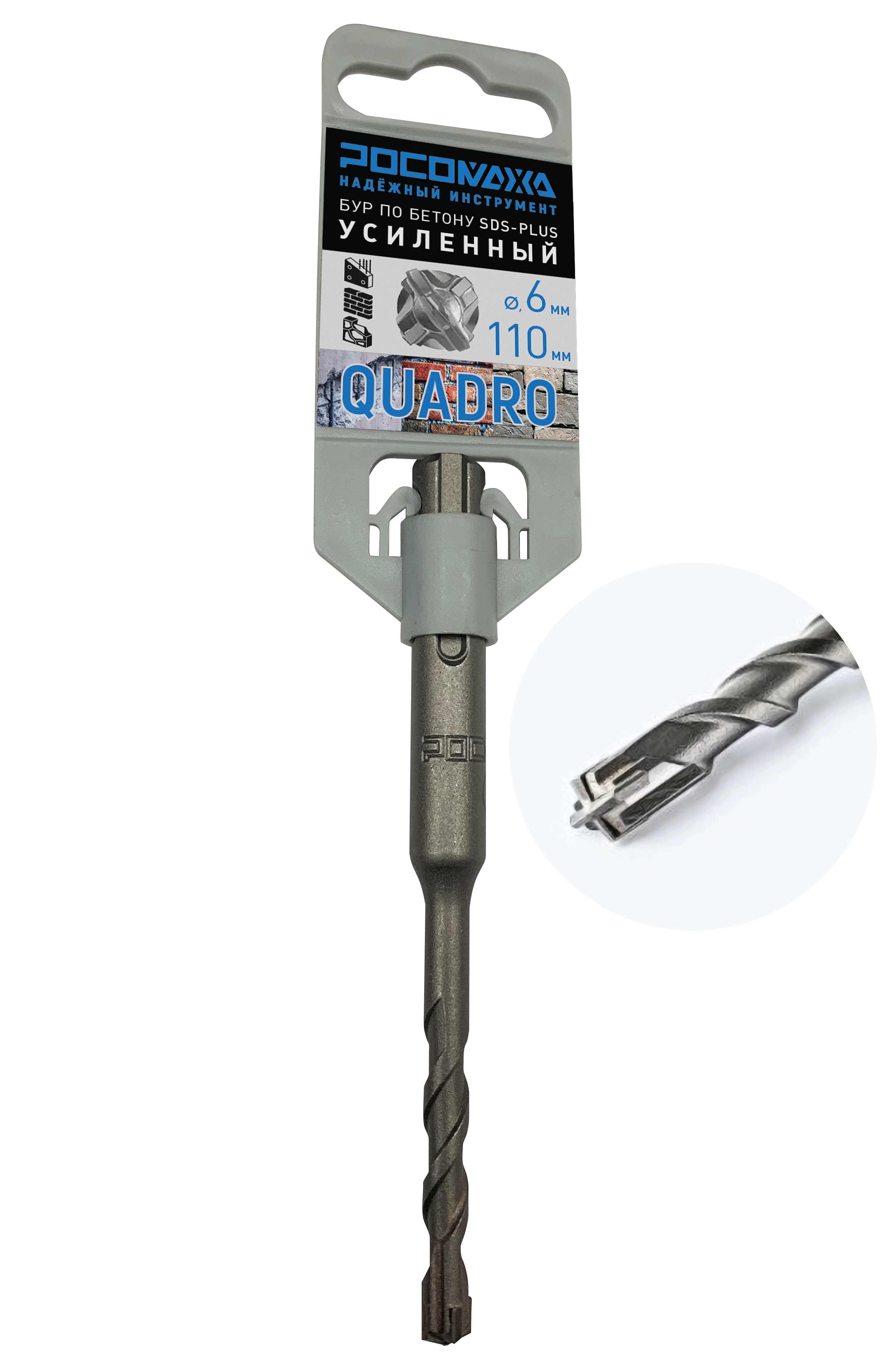 Бур по бетону SDS-plus усиленный 4 режущие грани 6*110 мм "РОСОМАХА" [5 шт]