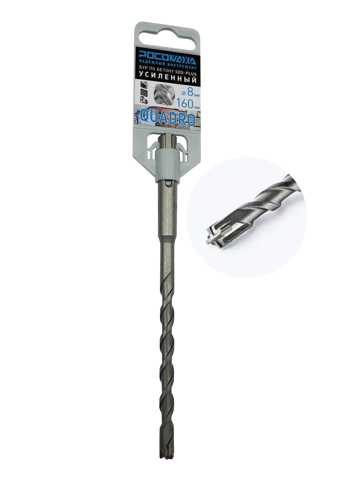 Бур по бетону SDS-plus усиленный 4 режущие грани 8*160 мм "РОСОМАХА" [1 шт]