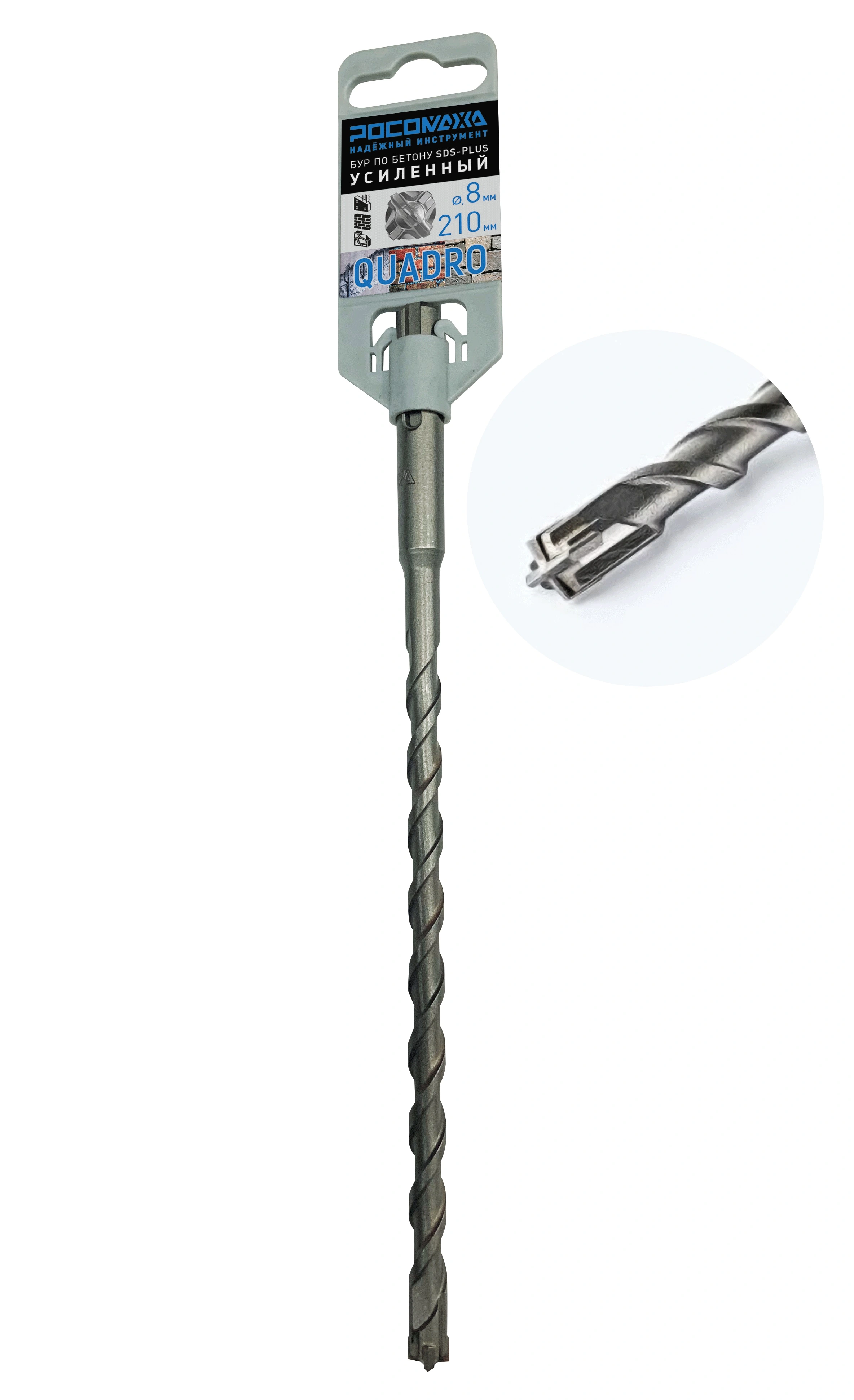 Бур по бетону SDS-plus усиленный 4 режущие грани 8*210 мм "РОСОМАХА" [1 шт]