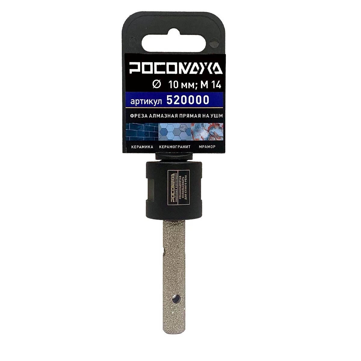 Фреза алмазная прямая по керамике, керамограниту и мрамору (10 мм; М14) "РОСОМАХА" [1 шт]