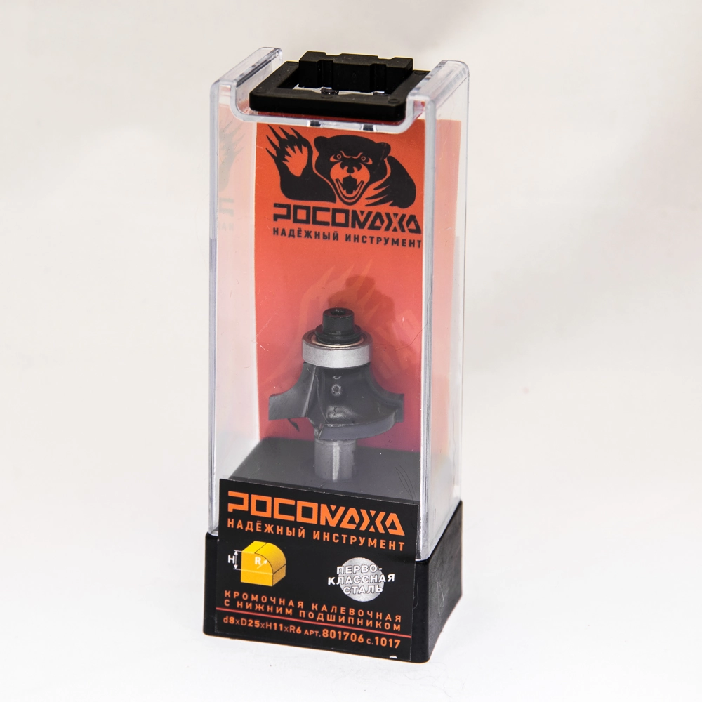 Фреза кромочная калевочная с нижним подшипником d8*D25*H11*R6 "РОСОМАХА" серия 1017 [1 шт]