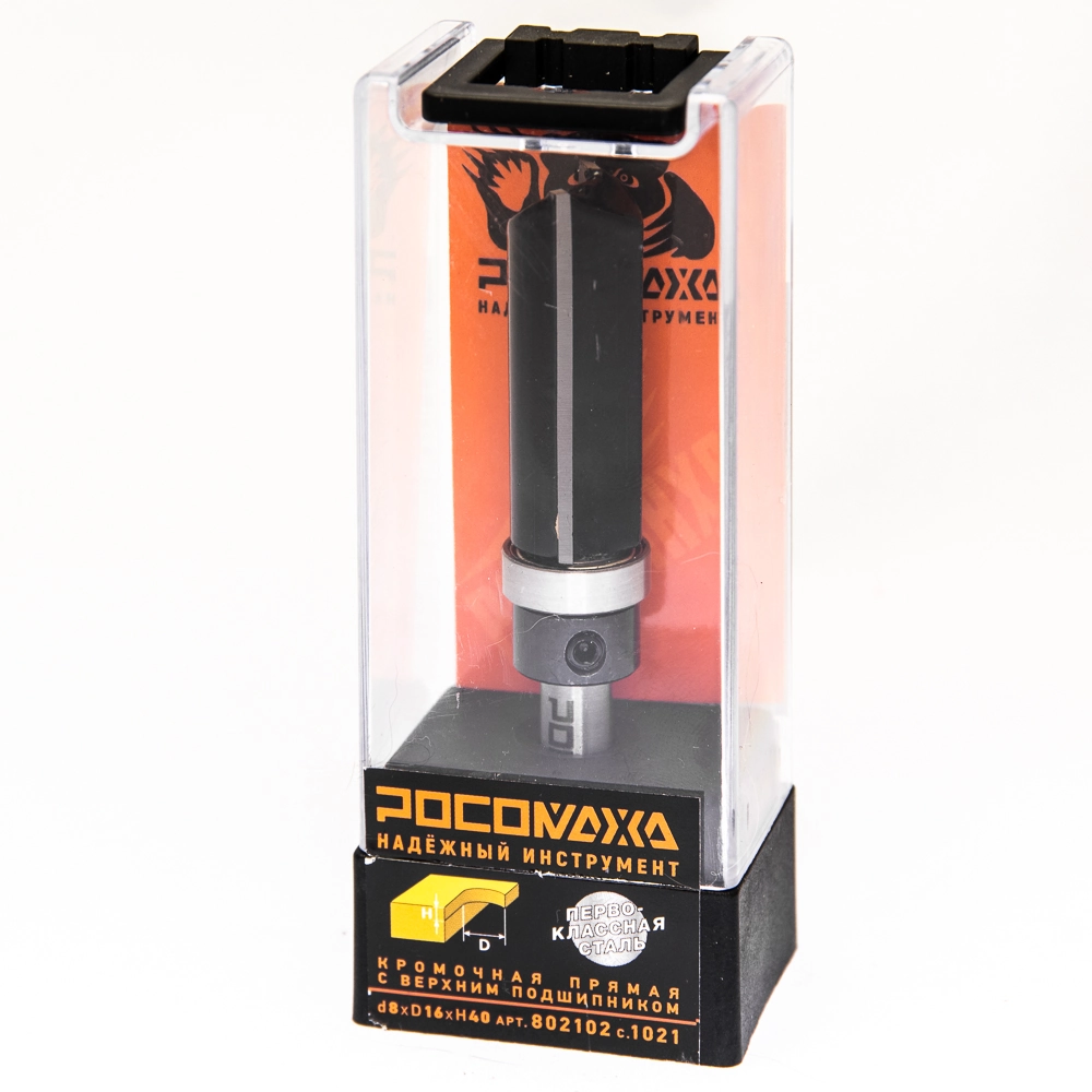 Фреза кромочная прямая с верхним подшипником d8*D16*H40 "РОСОМАХА" серия 1021 [1 шт]