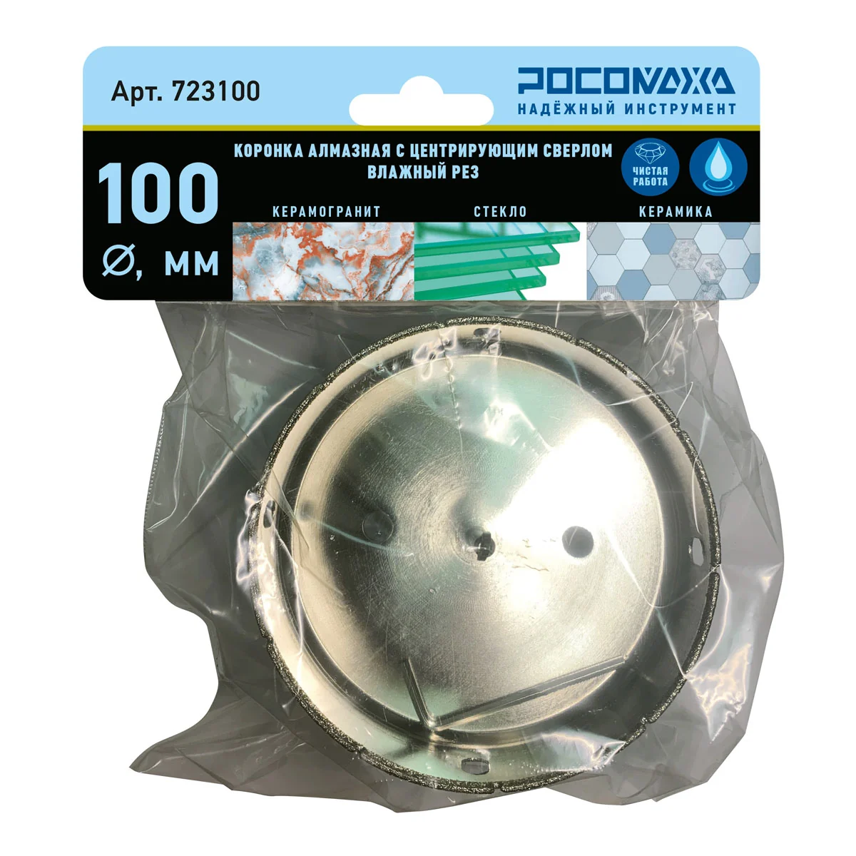 Коронка алмазная с центрирующим сверлом по керамограниту и керамике 100 мм "РОСОМАХА" [1 шт]