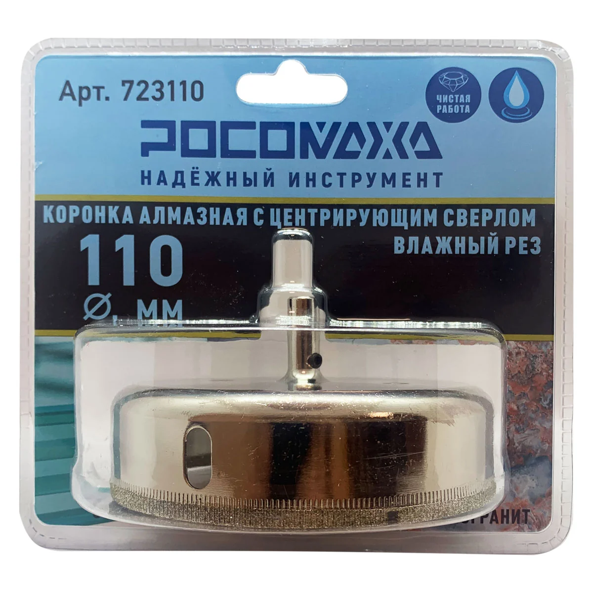 Коронка алмазная с центрирующим сверлом по керамограниту и керамике 110 мм "РОСОМАХА" [1 шт]
