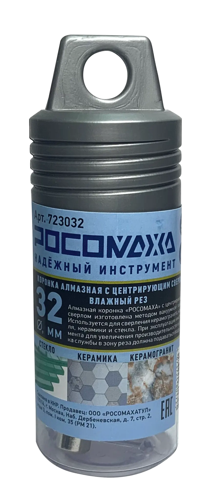 Коронка алмазная с центрирующим сверлом по керамограниту и керамике 32 мм "РОСОМАХА" [1 шт]