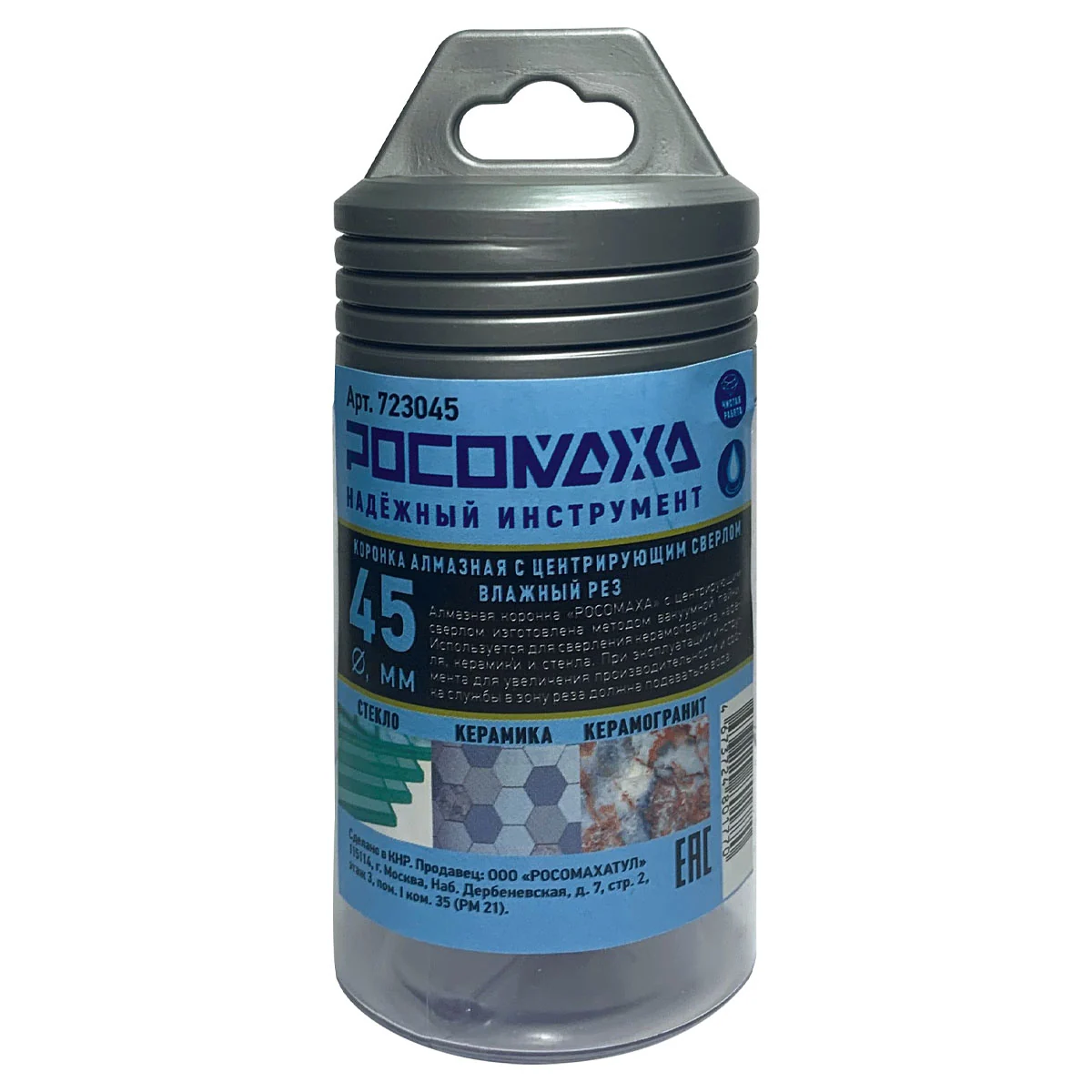 Коронка алмазная с центрирующим сверлом по керамограниту и керамике 45 мм "РОСОМАХА" [1 шт]