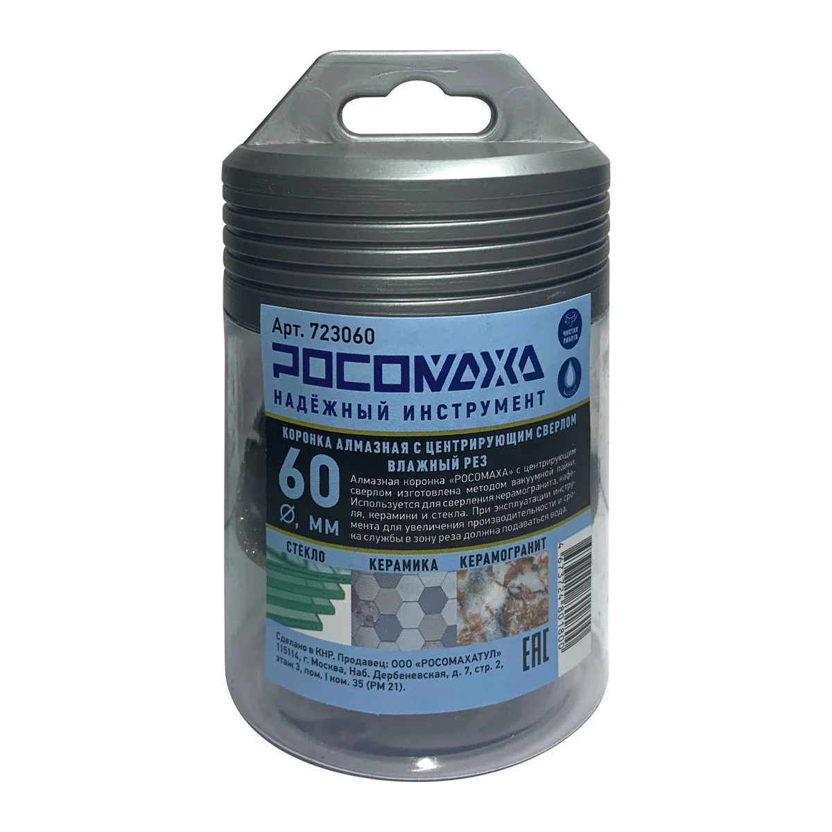 Коронка алмазная с центрирующим сверлом по керамограниту и керамике 60 мм "РОСОМАХА" [1 шт]