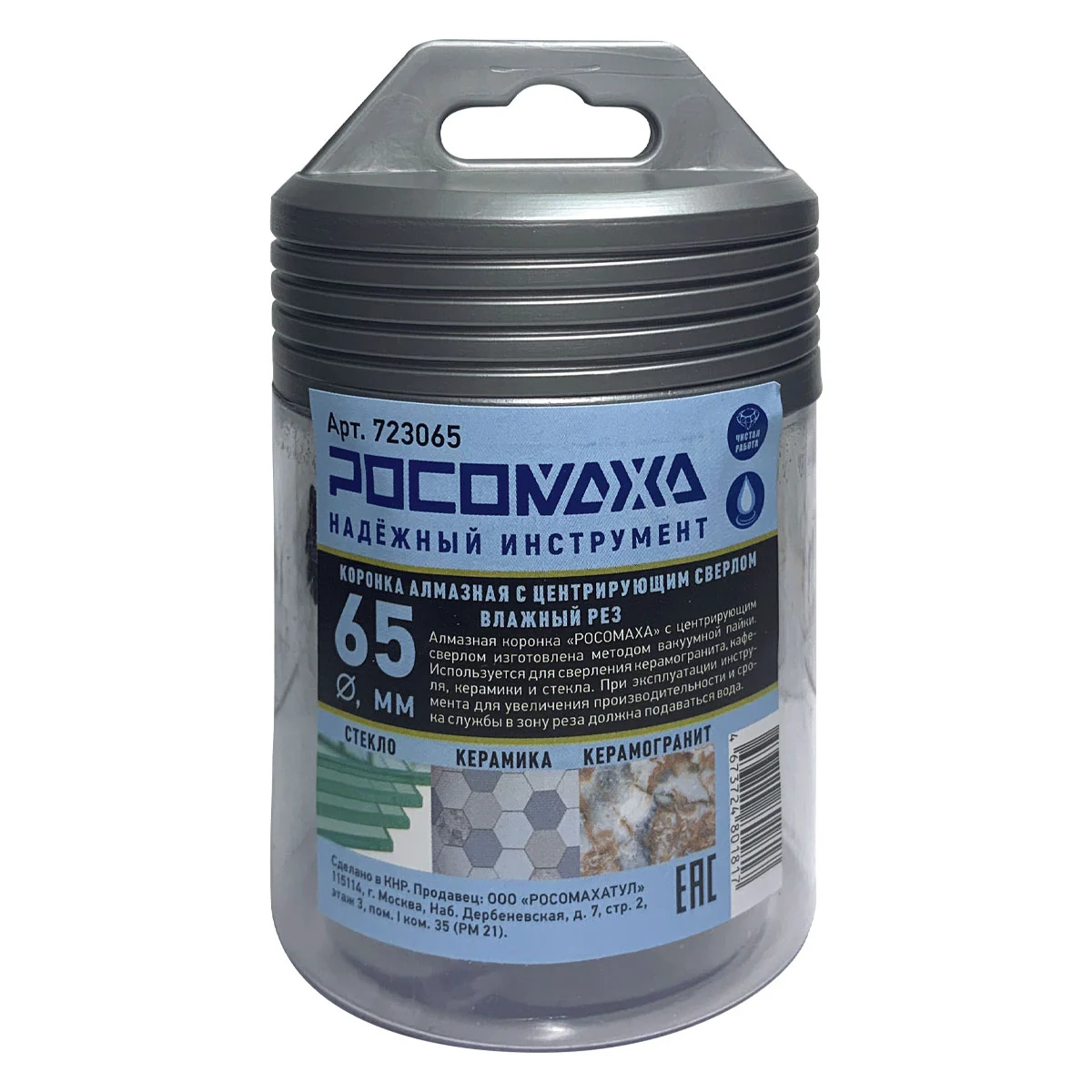 Коронка алмазная с центрирующим сверлом по керамограниту и керамике 65 мм "РОСОМАХА" [1 шт]