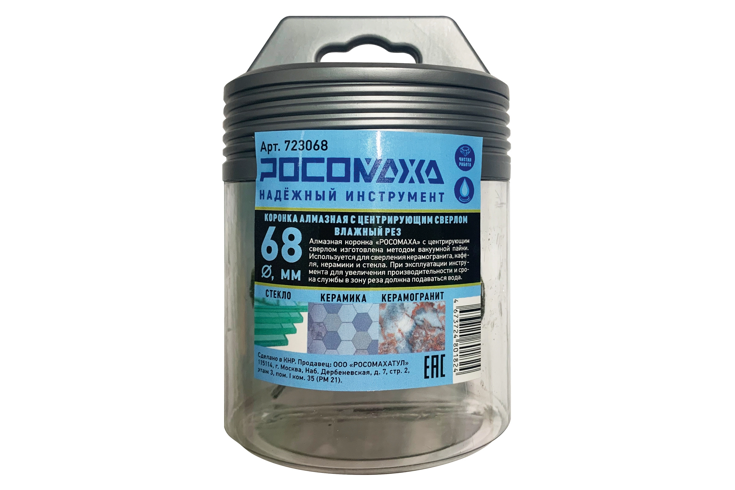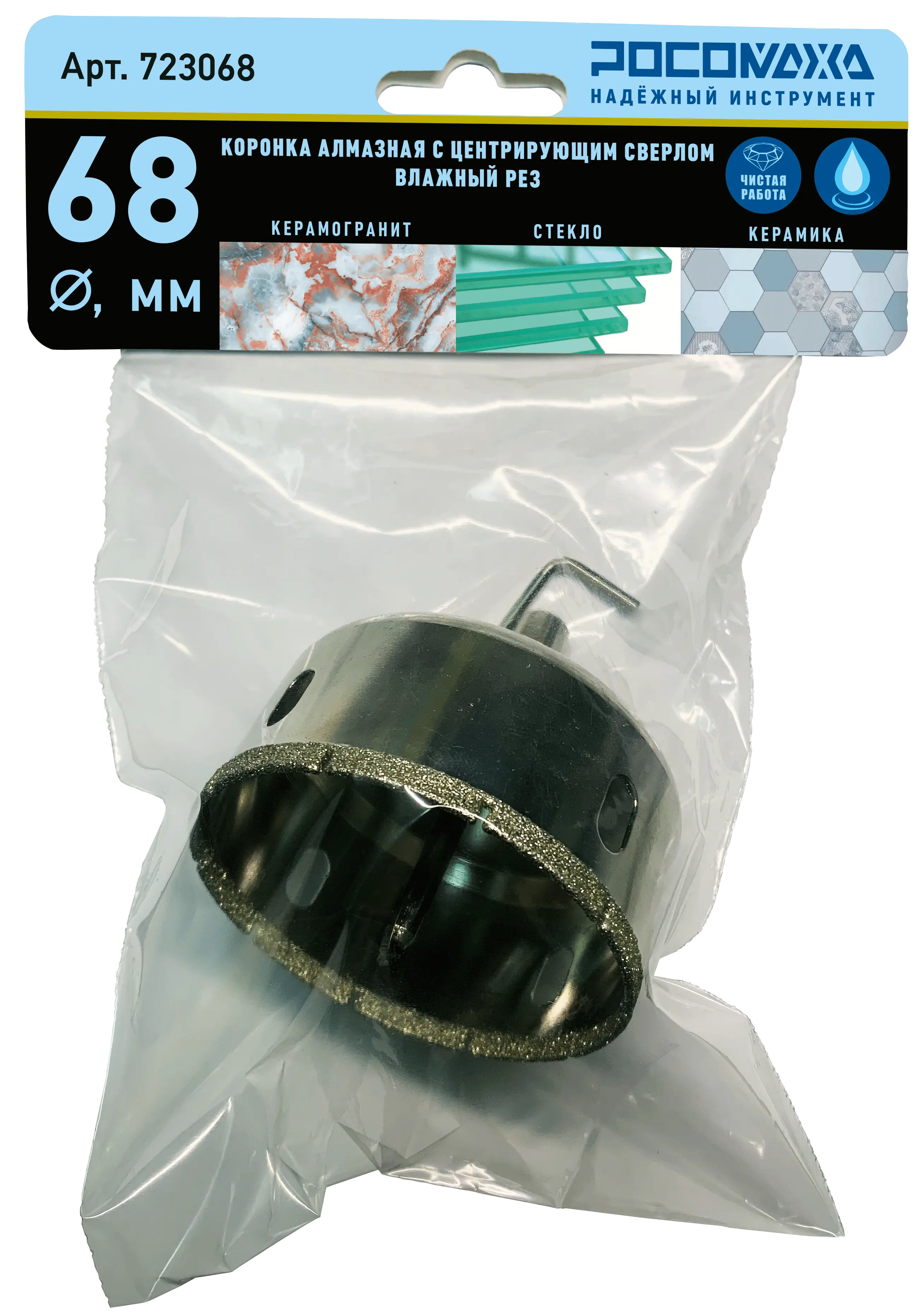 Коронка алмазная с центрирующим сверлом по керамограниту и керамике 68 мм "РОСОМАХА" [1 шт]