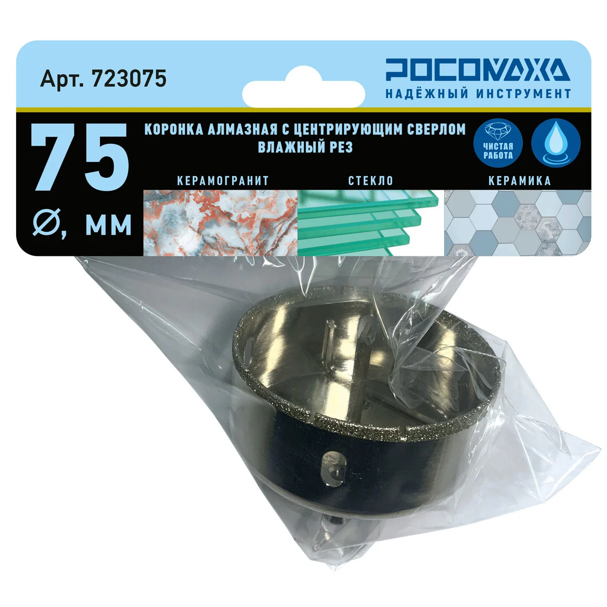 Коронка алмазная с центрирующим сверлом по керамограниту и керамике 75 мм "РОСОМАХА" [1 шт]