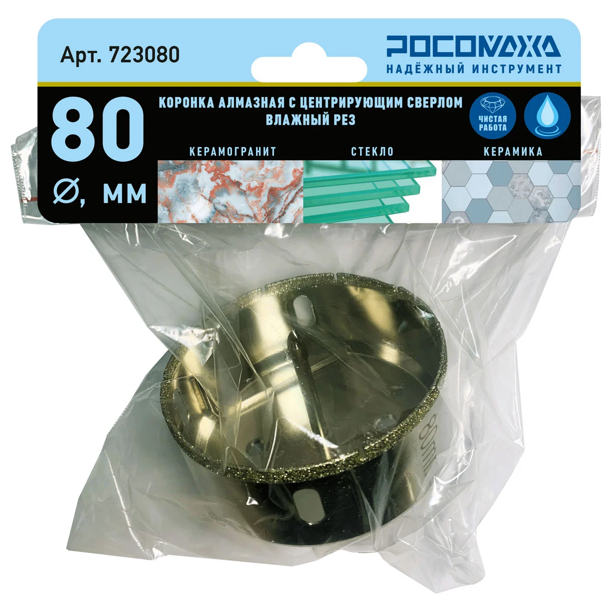 Коронка алмазная с центрирующим сверлом по керамограниту и керамике 80 мм "РОСОМАХА" [1 шт]
