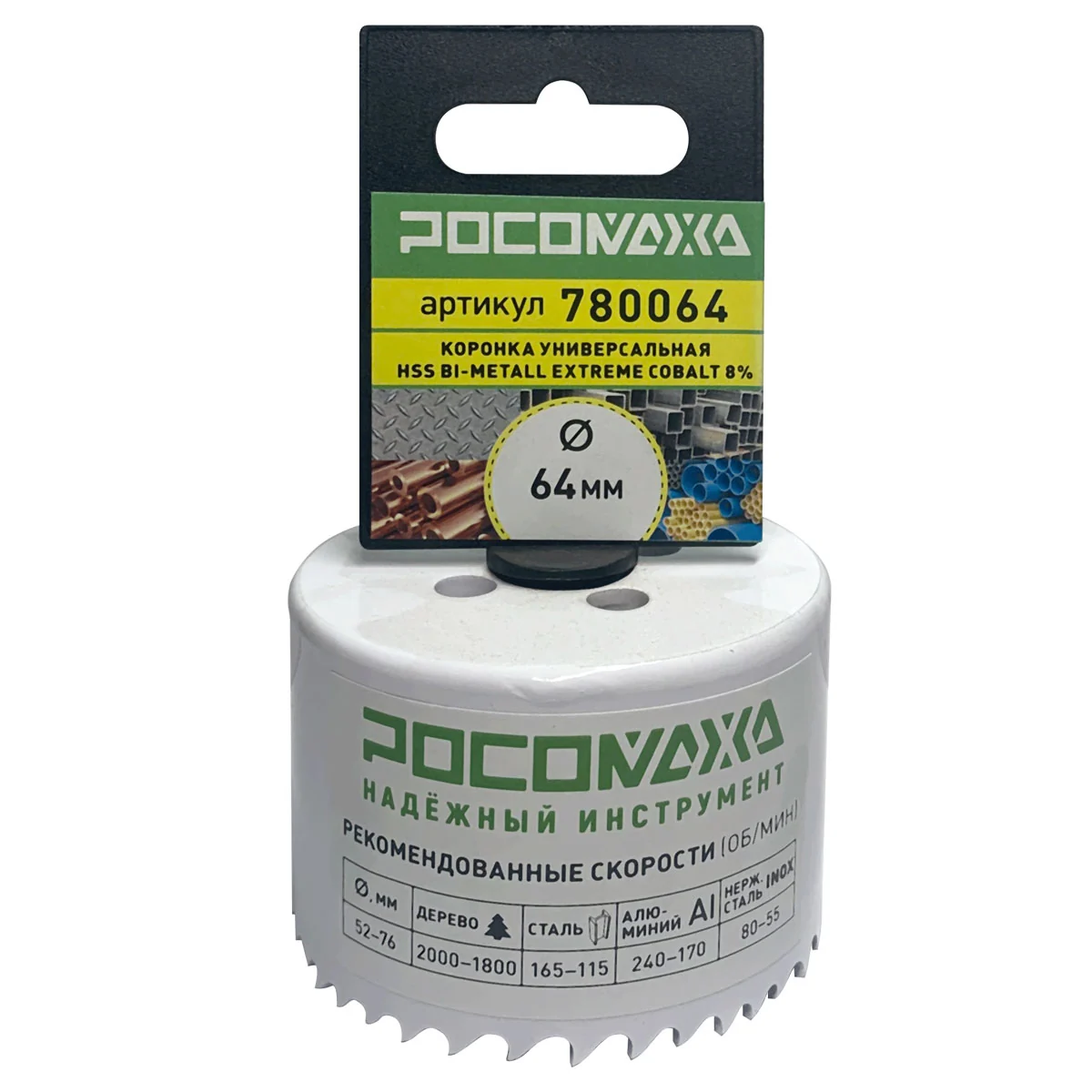 Коронка HSS Bi-Metall Extreme Cobalt 8% 64 мм "РОСОМАХА" [1 шт]