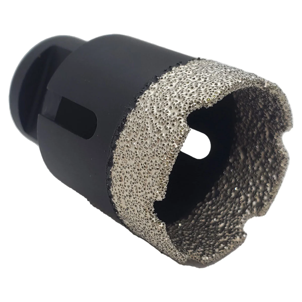 Универсальная алмазная коронка «РОСОМАХА» применяется для сухого сверления керамогранита наивысшего класса твердости, камня, мрамора, керамики, бетона, кирпича, ограниченного листового металла, дерева и комбинации всех этих материалов. Глубина сверления — 35 мм. Высокая плотность и равномерное расположение алмазов на рабочей кромке гарантируют эффективную работу и продолжительный срок службы оснастки. ВАЖНАЯ ИНФОРМАЦИЯ! Непрерывно сверлить не более 5 секунд + охлаждать воском, а не водой, так как использование воды для охлаждения существенно снижает ресурс.