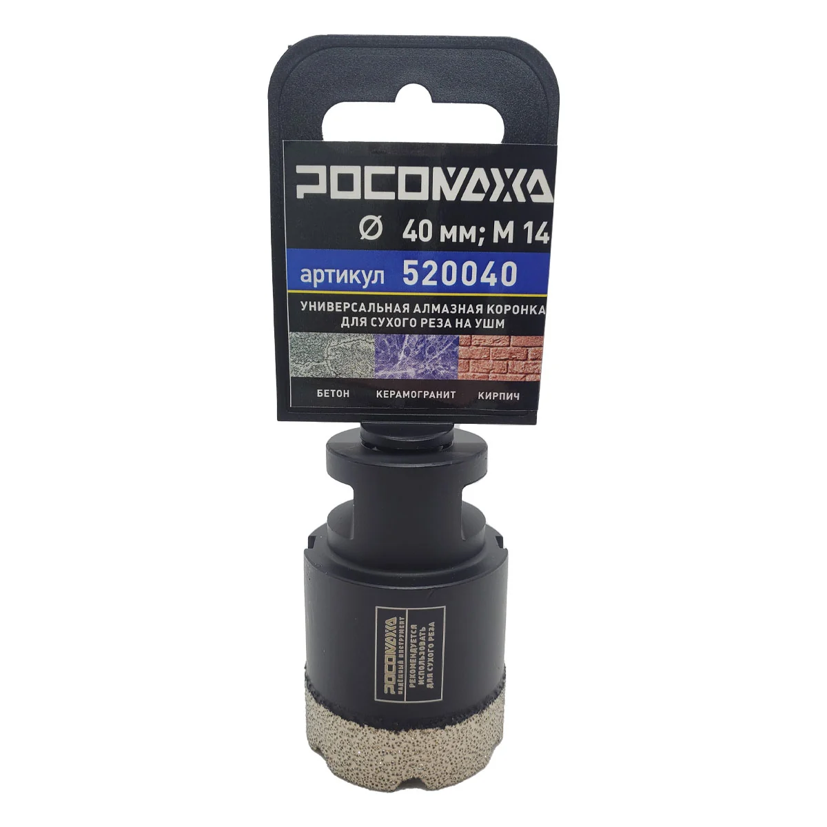 Универсальная алмазная коронка (40 мм; М14) для сухого реза на УШМ "РОСОМАХА" [1 шт]