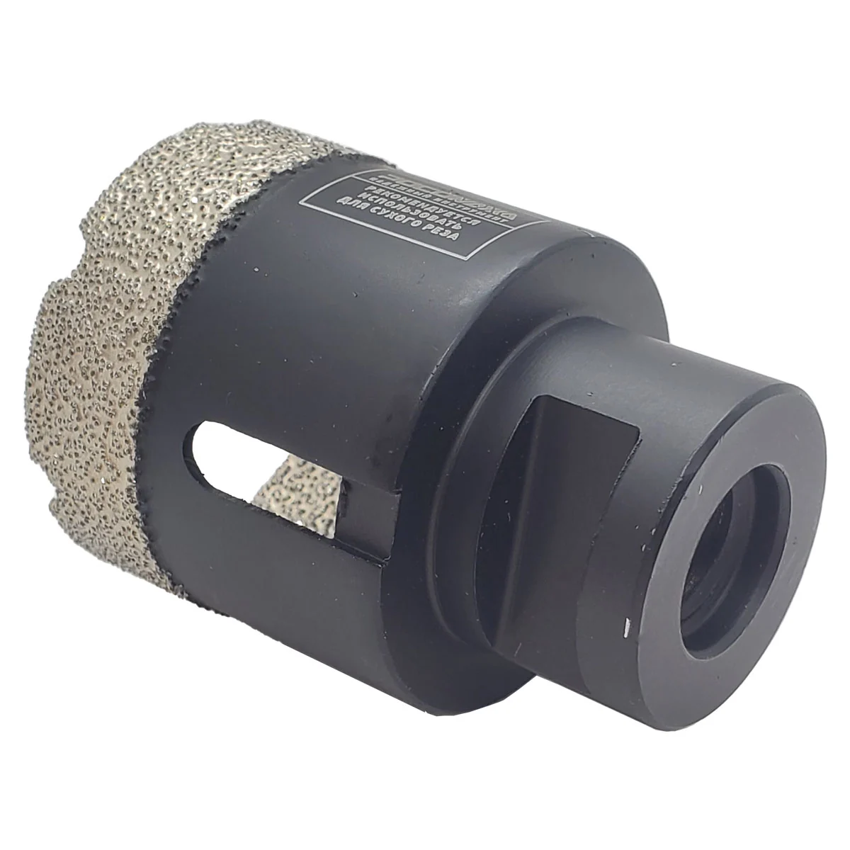 Универсальная алмазная коронка «РОСОМАХА» применяется для сухого сверления керамогранита наивысшего класса твердости, камня, мрамора, керамики, бетона, кирпича, ограниченного листового металла, дерева и комбинации всех этих материалов. Глубина сверления — 35 мм. Высокая плотность и равномерное расположение алмазов на рабочей кромке гарантируют эффективную работу и продолжительный срок службы оснастки. ВАЖНАЯ ИНФОРМАЦИЯ! Непрерывно сверлить не более 5 секунд + охлаждать воском, а не водой, так как использование воды для охлаждения существенно снижает ресурс.