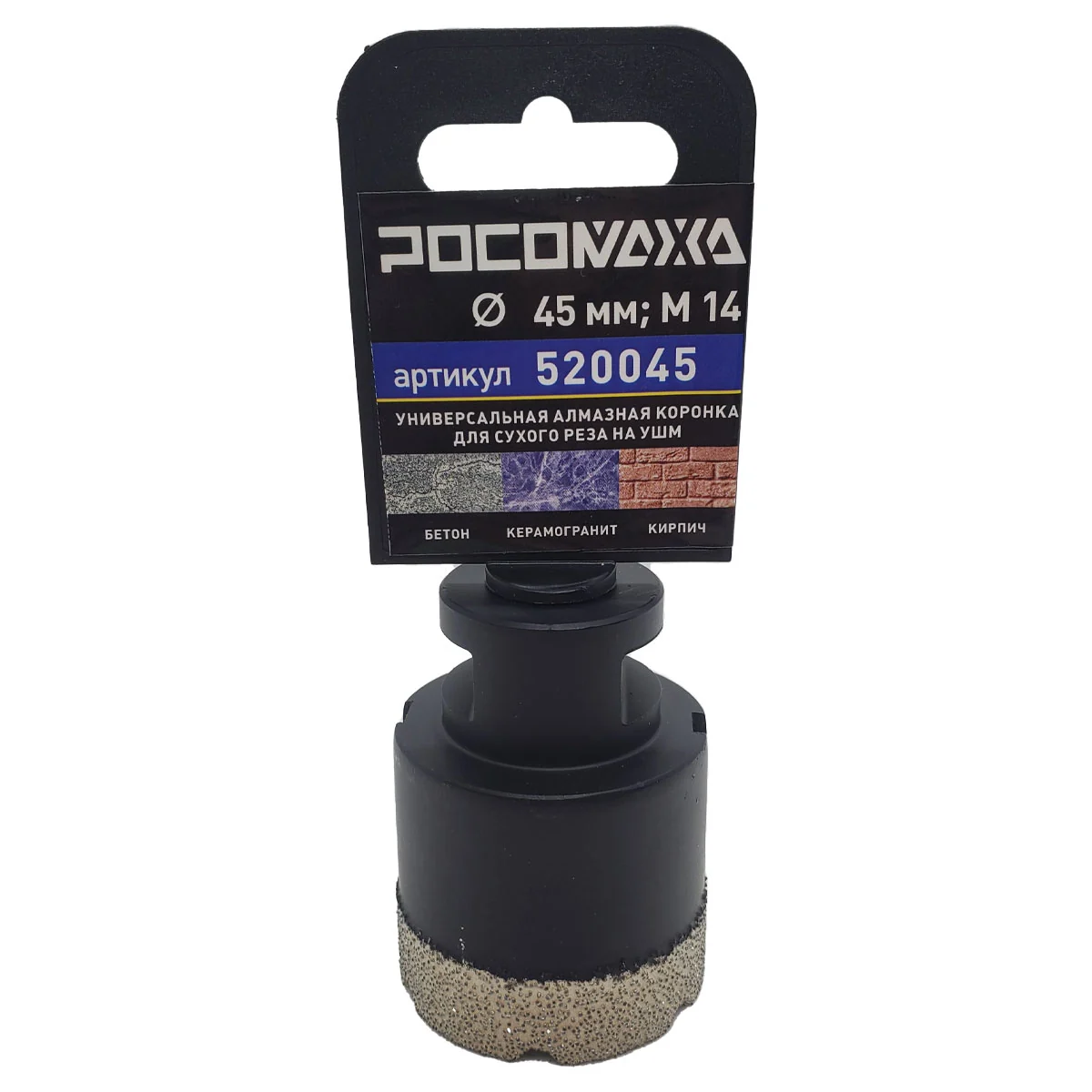 Универсальная алмазная коронка (45 мм; М14) для сухого реза на УШМ "РОСОМАХА" [1 шт]