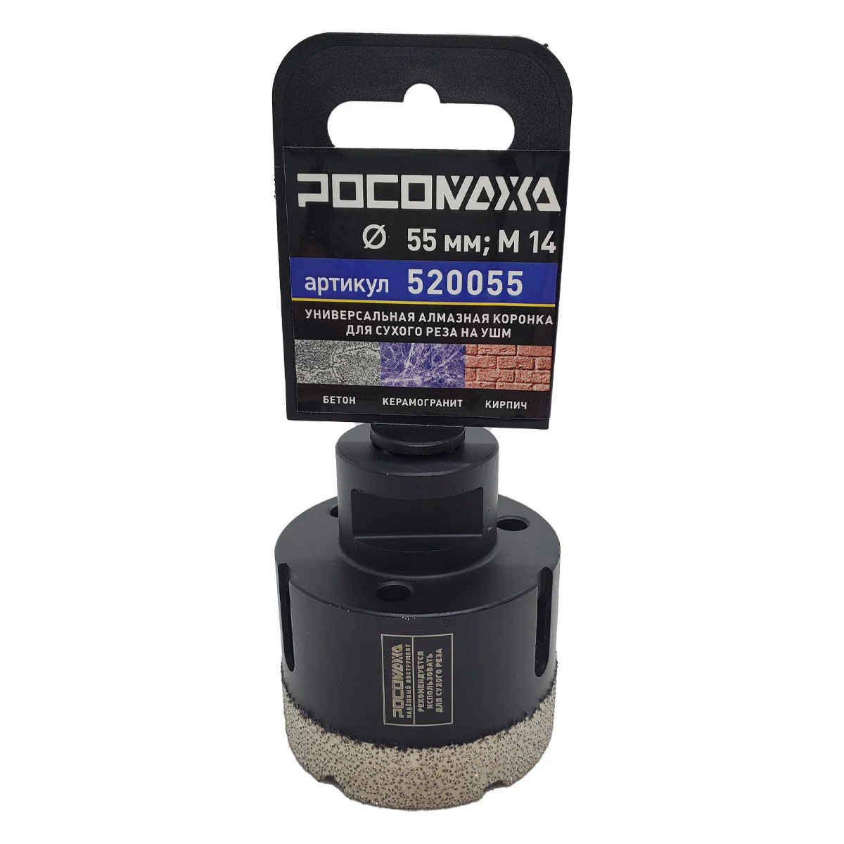 Универсальная алмазная коронка (55 мм; М14) для сухого реза на УШМ "РОСОМАХА" [1 шт]