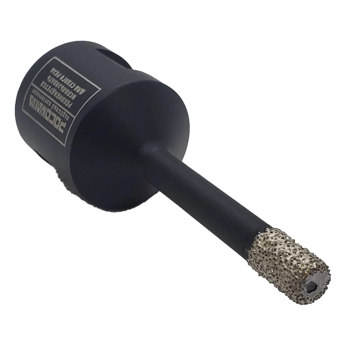 Универсальная алмазная коронка «РОСОМАХА» применяется для сухого сверления керамогранита наивысшего класса твердости, камня, мрамора, керамики, бетона, кирпича, ограниченного листового металла, дерева и комбинации всех этих материалов. Глубина сверления — 35 мм. Высокая плотность и равномерное расположение алмазов на рабочей кромке гарантируют эффективную работу и продолжительный срок службы оснастки. ВАЖНАЯ ИНФОРМАЦИЯ! Непрерывно сверлить не более 5 секунд + охлаждать воском, а не водой, так как использование воды для охлаждения существенно снижает ресурс.
