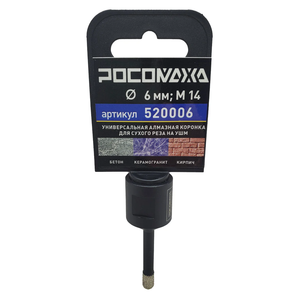 Универсальная алмазная коронка (6 мм; М14) для сухого реза на УШМ "РОСОМАХА" [1 шт]