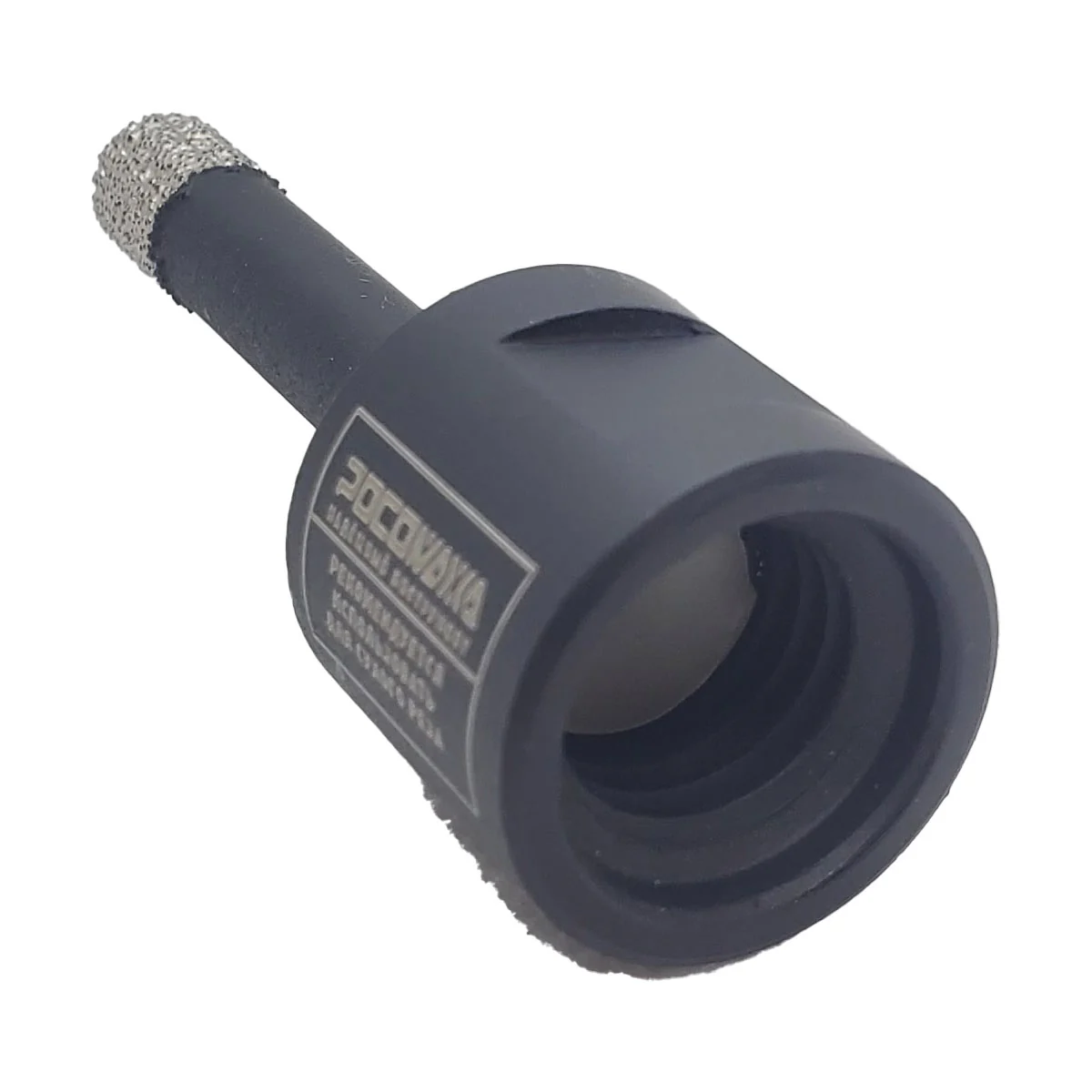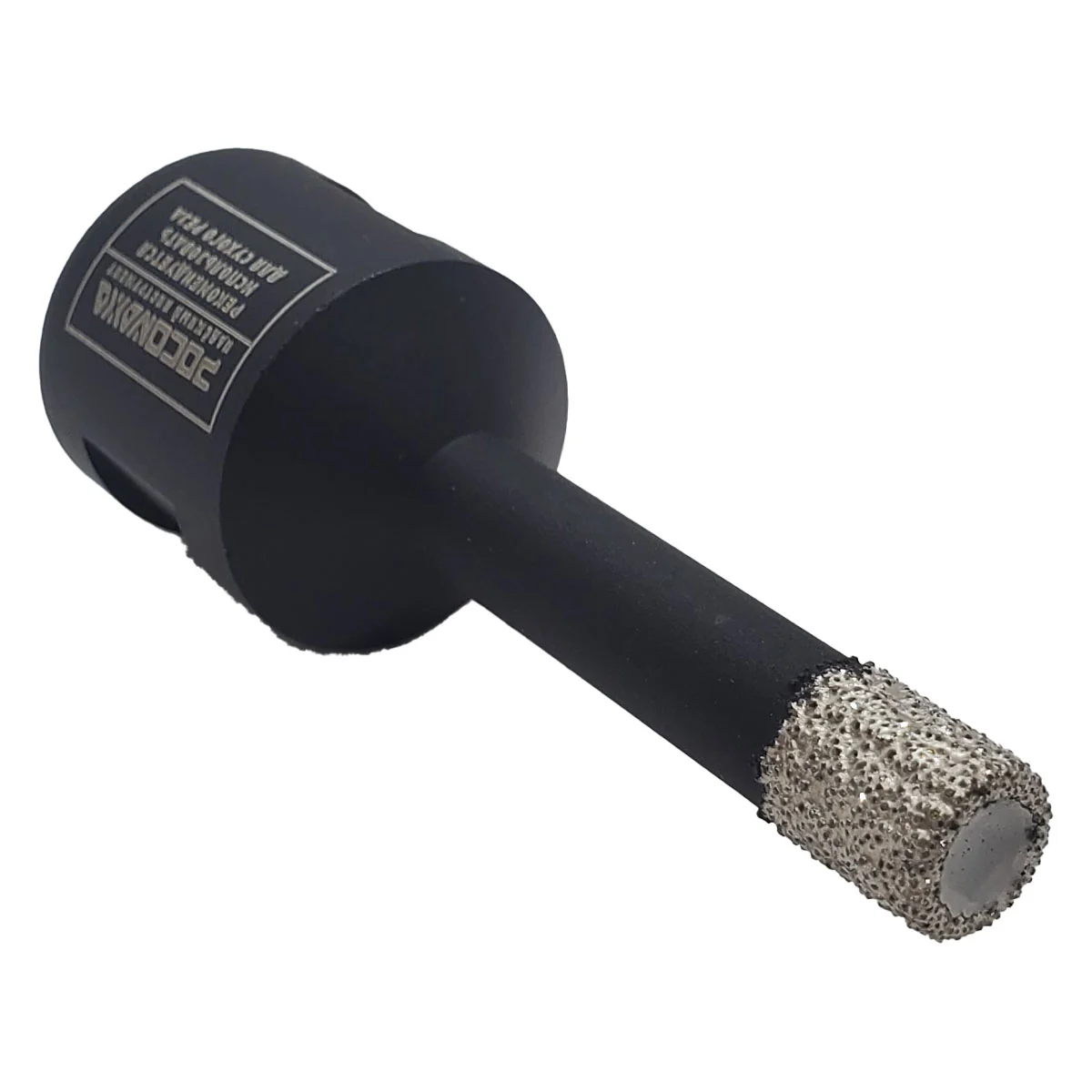 Универсальная алмазная коронка «РОСОМАХА» применяется для сухого сверления керамогранита наивысшего класса твердости, камня, мрамора, керамики, бетона, кирпича, ограниченного листового металла, дерева и комбинации всех этих материалов. Глубина сверления — 35 мм. Высокая плотность и равномерное расположение алмазов на рабочей кромке гарантируют эффективную работу и продолжительный срок службы оснастки. ВАЖНАЯ ИНФОРМАЦИЯ! Непрерывно сверлить не более 5 секунд + охлаждать воском, а не водой, так как использование воды для охлаждения существенно снижает ресурс.