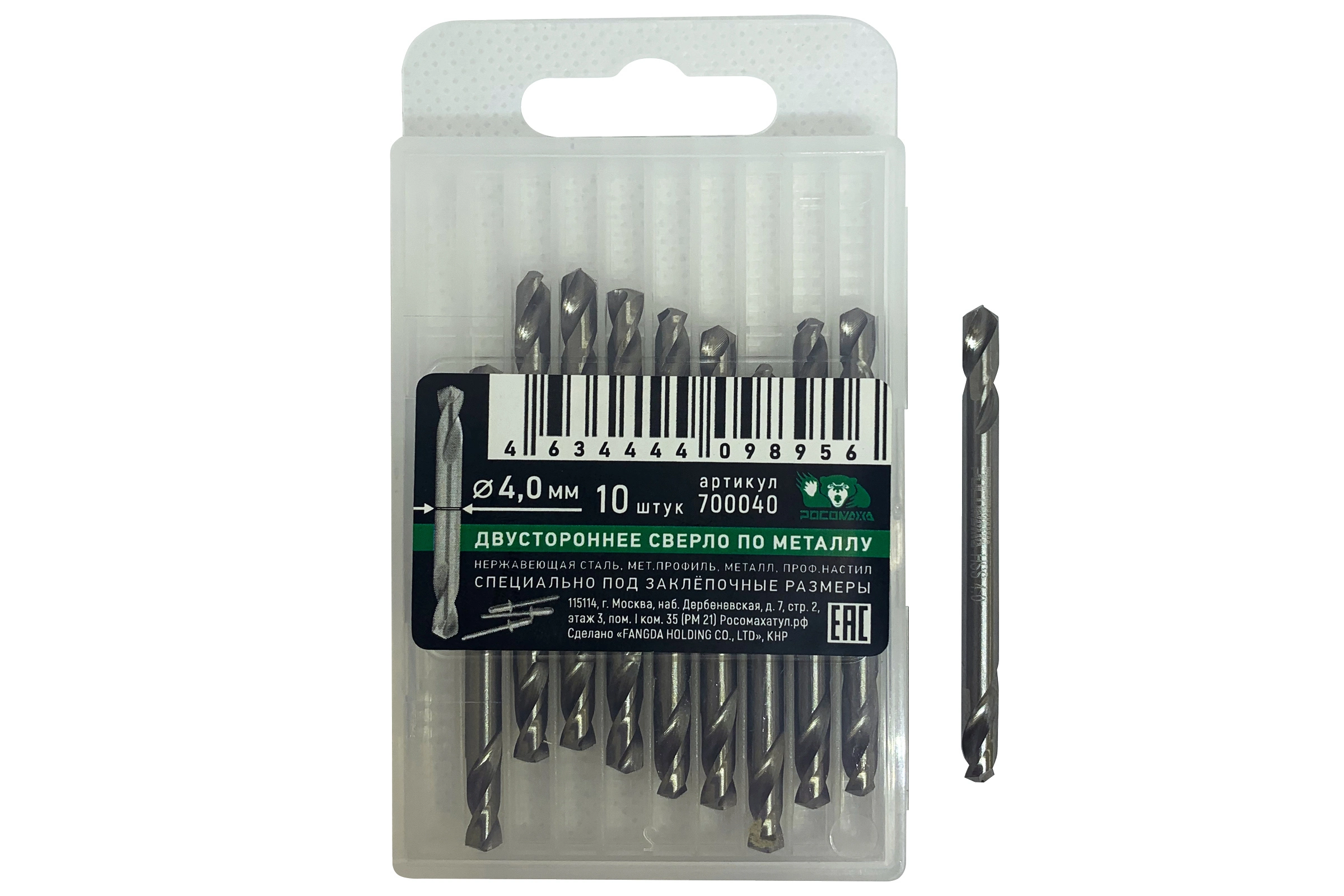 Сверла по металлу двухсторонние, HSS-G, 4,0*13/55 "РОСОМАХА" [10 шт]