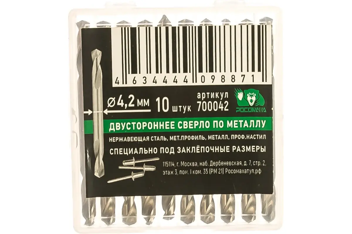 Сверла по металлу двухсторонние, HSS-G, 4,2*13/55 "РОСОМАХА" [10 шт]