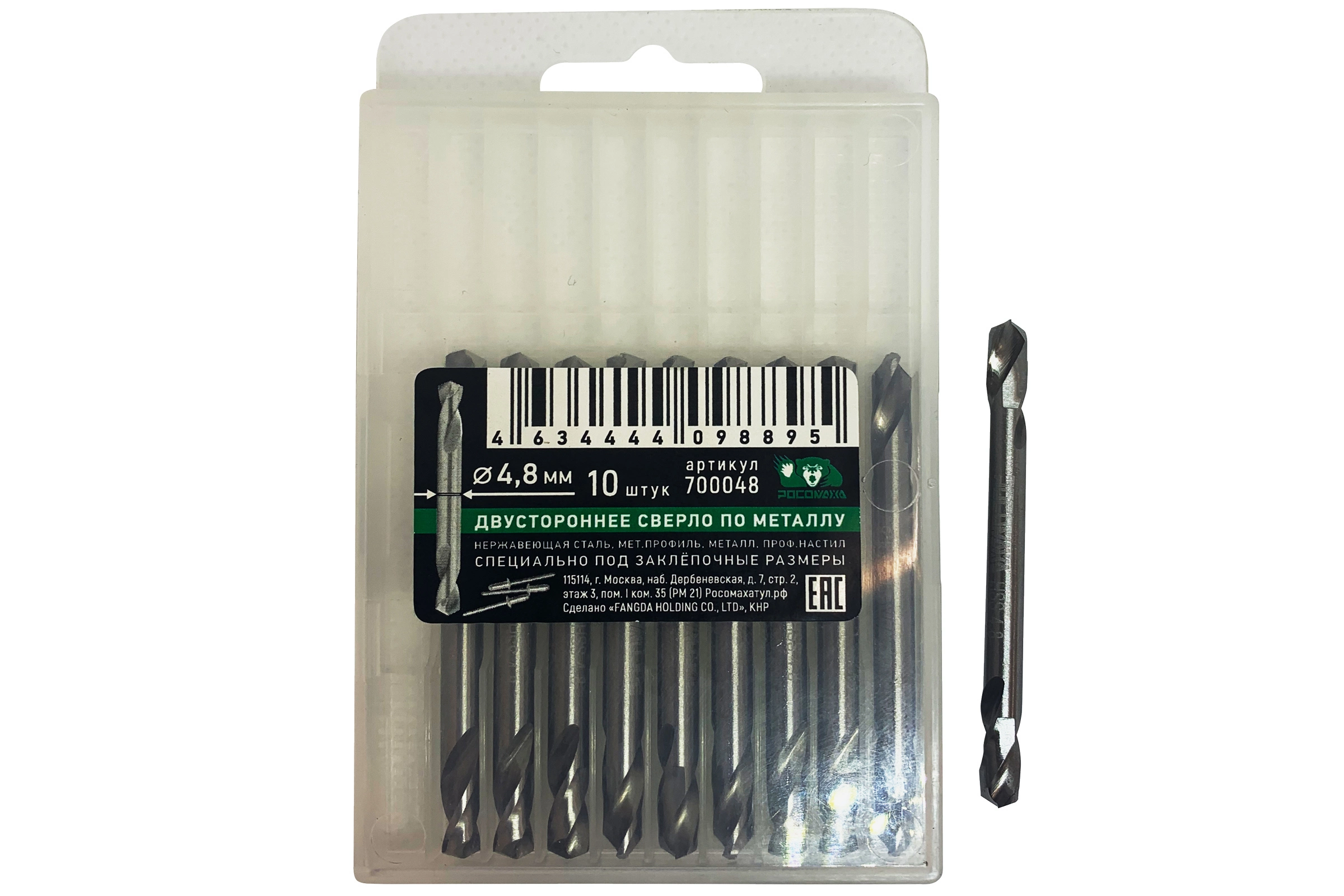 Сверла по металлу двухсторонние, HSS-G, 4,8*16/62 "РОСОМАХА" [10 шт]