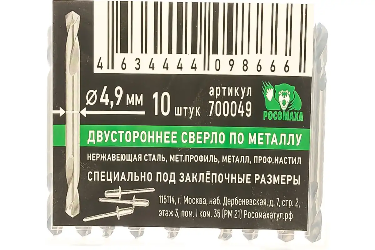 Сверла по металлу двухсторонние, HSS-G, 4,9*16/62 "РОСОМАХА" [10 шт]