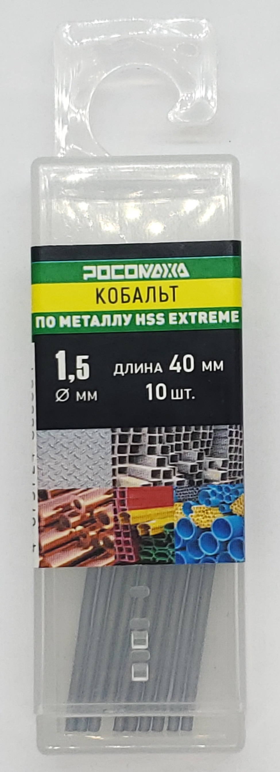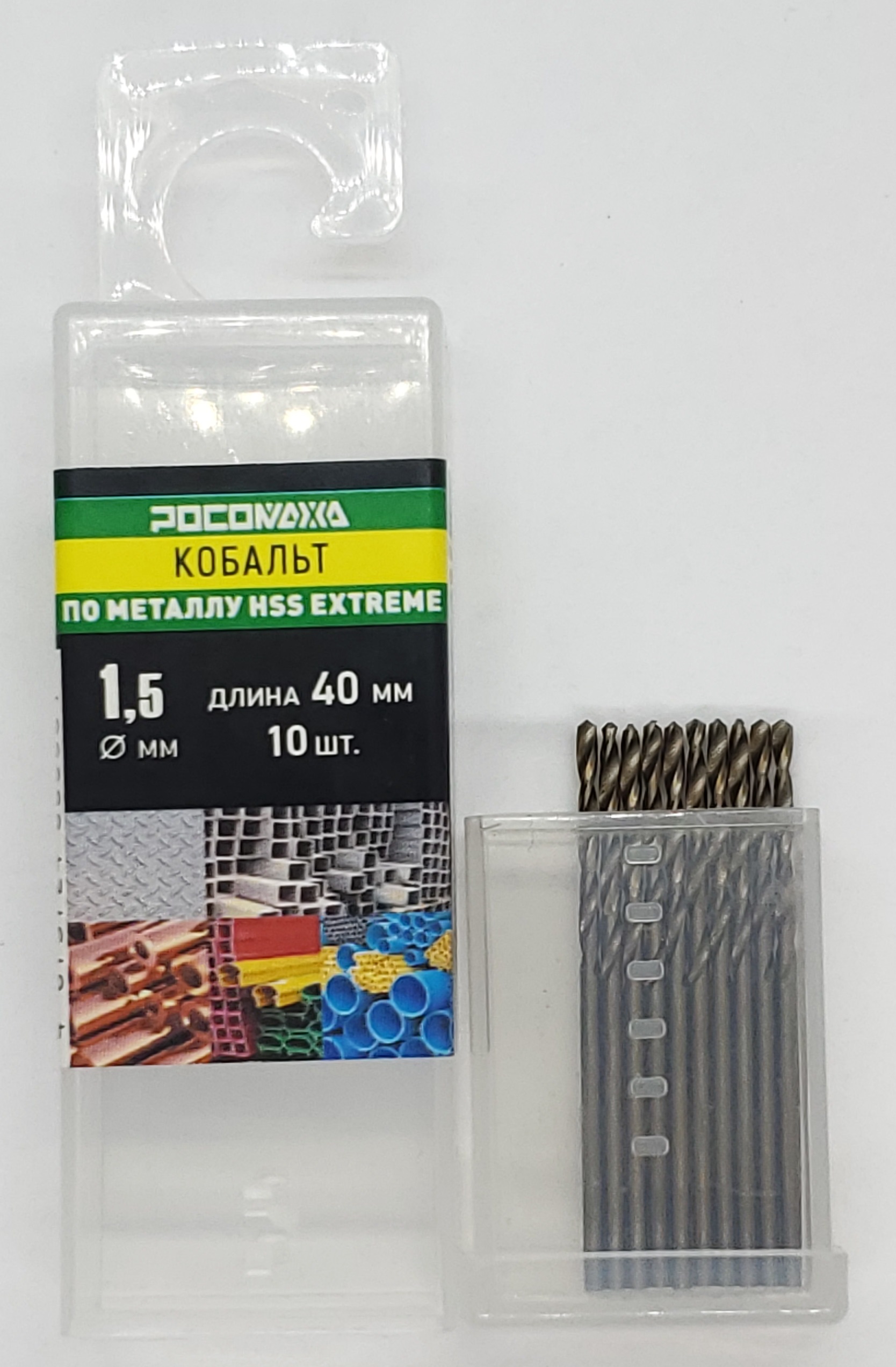 Сверло по металлу 1,5х40 мм Extreme COBALT 5% (HSS-G P6M5K5) "РОСОМАХА" [10 шт]