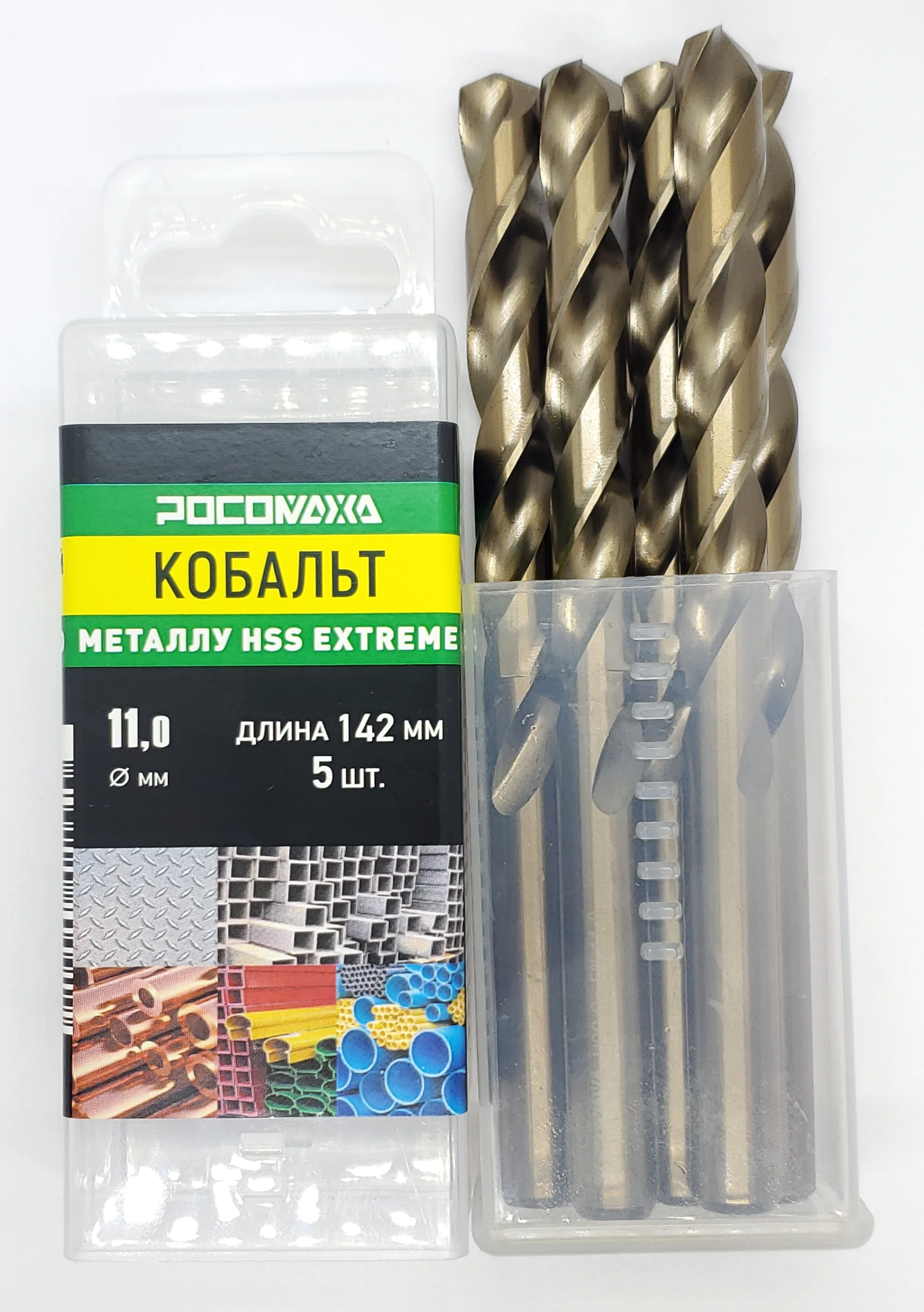 Сверло по металлу 11,0х142 мм Extreme COBALT 5% (HSS-G P6M5K5) "РОСОМАХА" [5 шт]