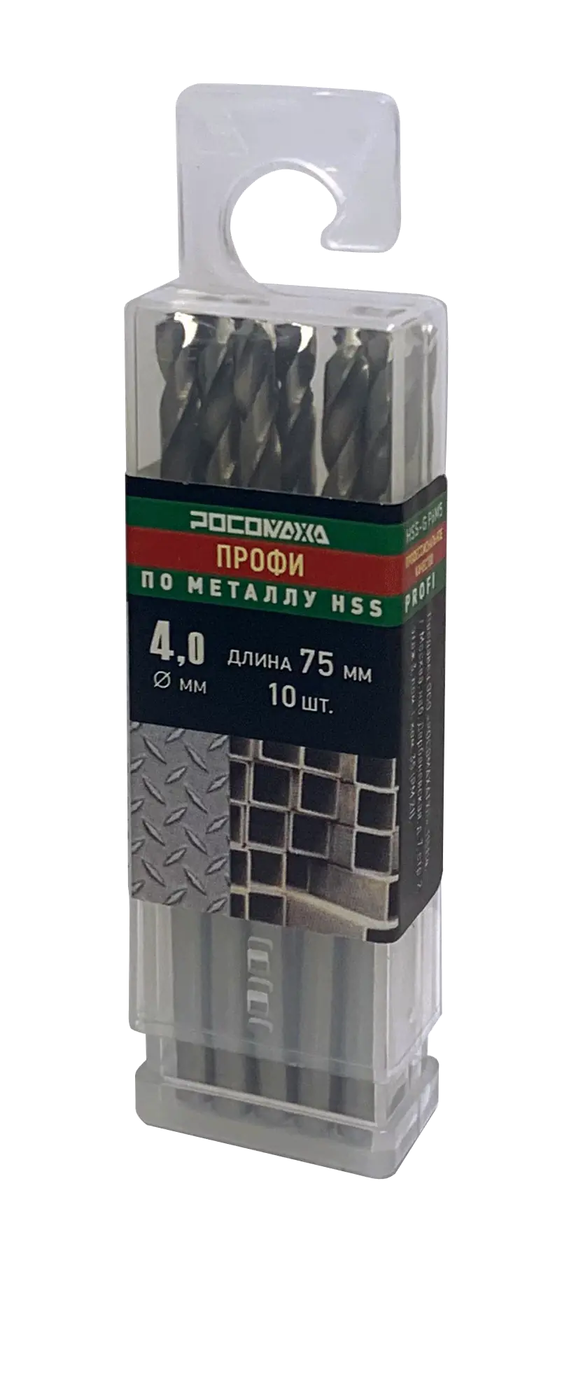 Сверло по металлу 4,0х75 мм PROFI (HSS-G P6M5) "РОСОМАХА" [10 шт]