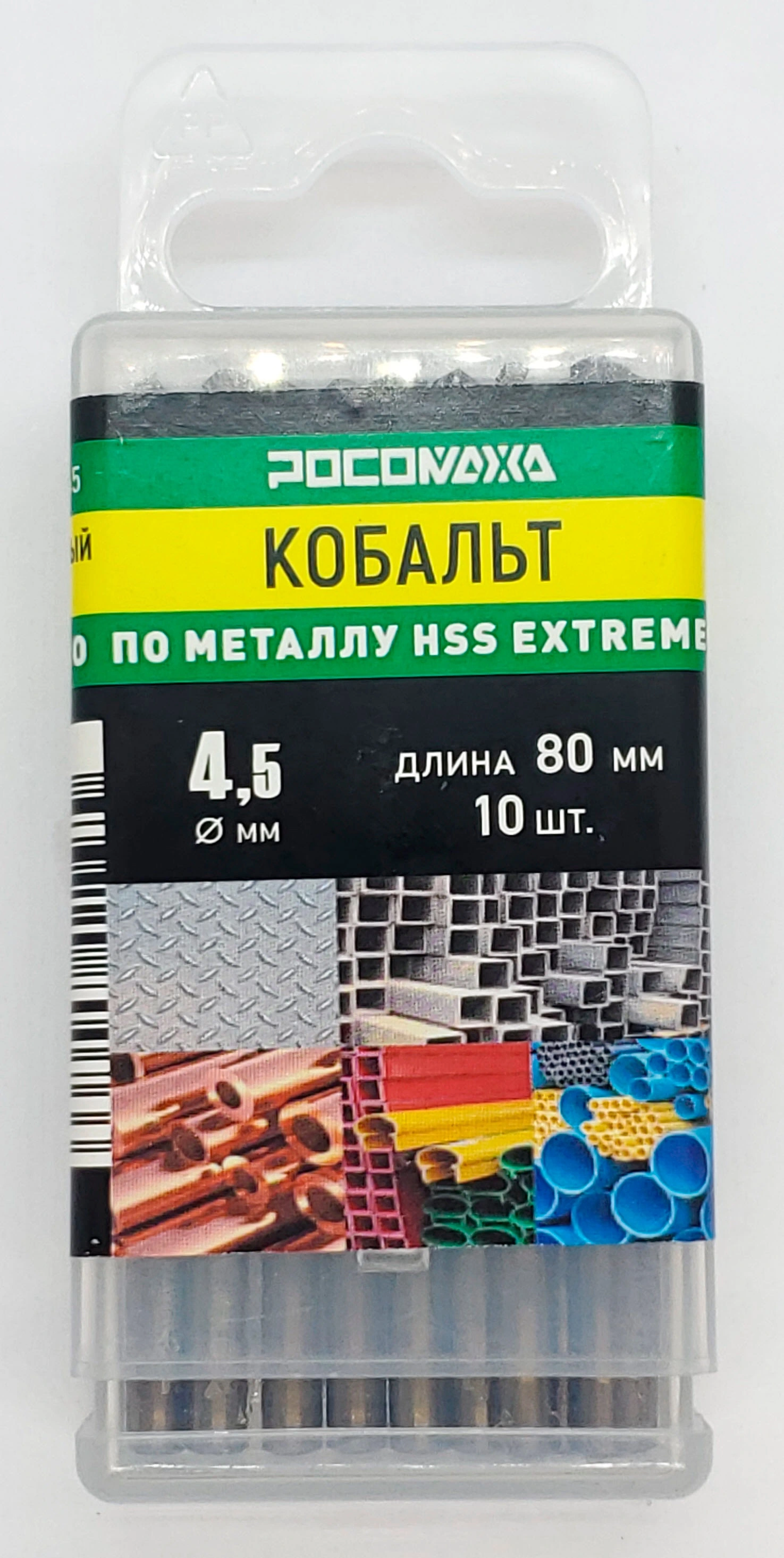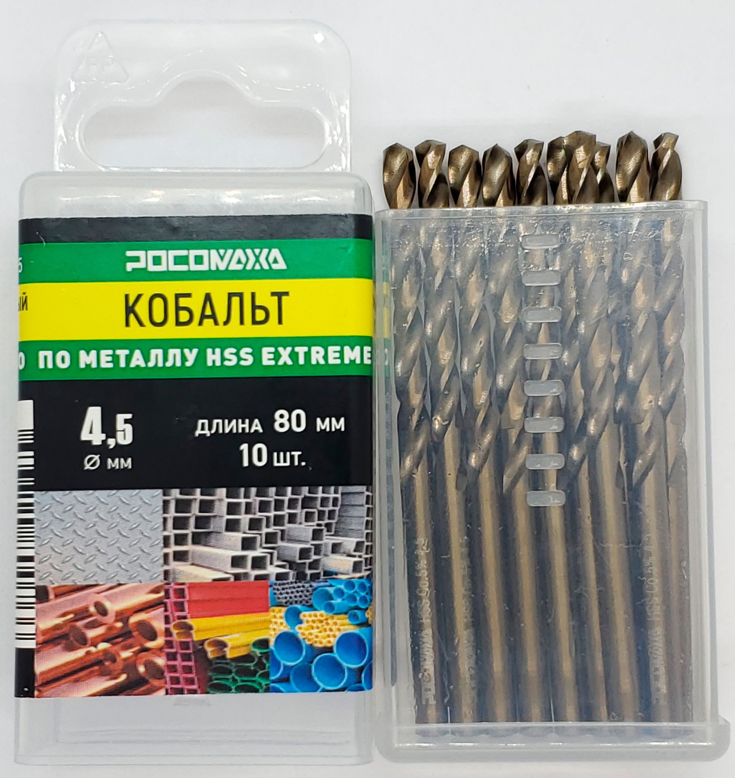 Сверло по металлу 4,5х80 мм Extreme COBALT 5% (HSS-G P6M5K5) "РОСОМАХА" [10 шт]