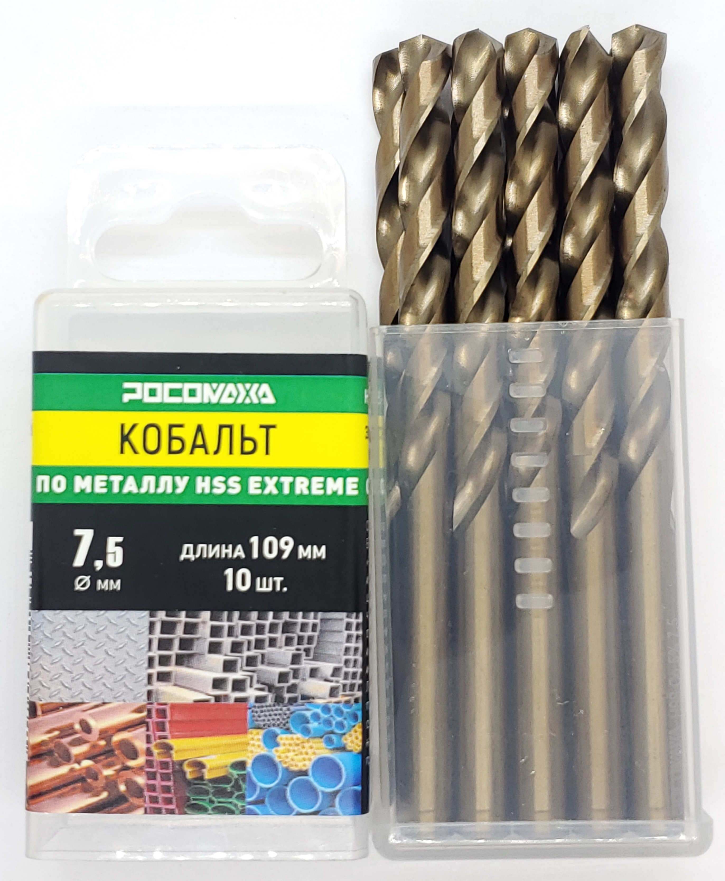 Сверло по металлу 7,5х109 мм Extreme COBALT 5% (HSS-G P6M5K5) "РОСОМАХА" [10 шт]